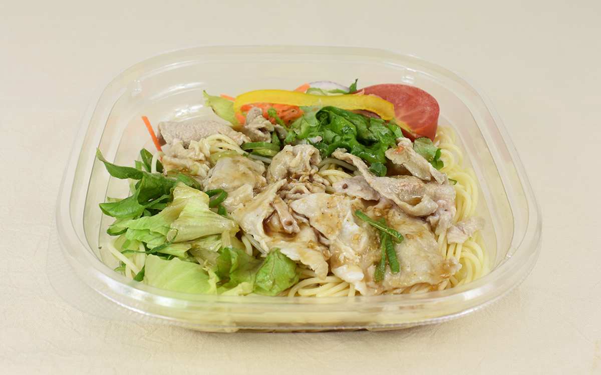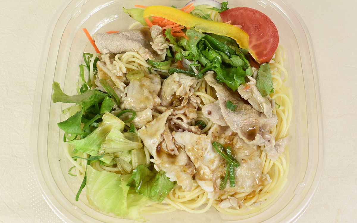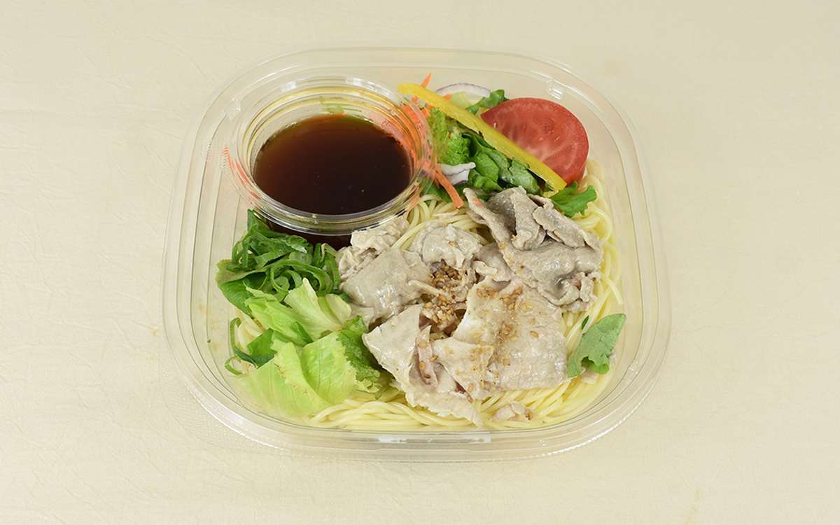 和風だれを和えた麺に、トマトや黄パプリカなど色鮮やかな野菜が乗せられた同商品。野菜以外に豚しゃぶもたっぷりトッピングされており、肉と野菜のバランスもバッチリな一品です。具だけでなく麺も存分に入っているためボリューム満点。ほかの副菜を買わなくてもしっかりお腹を満たせるのは助かりますね。