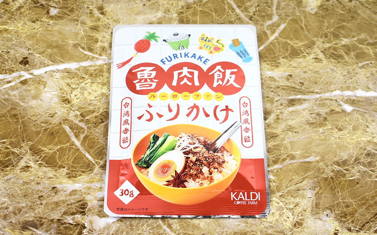 ご飯のお供として大活躍してくれる“ふりかけ”。のりたまや梅しそといったタイプは定番ですが、カルディには“変わり種商品”が数多く揃っています。そこで今回オススメしたいのは「ルーローファンふりかけ 30g」(192円/税込)。白飯にふりかけるだけで本格中華の味わいを堪能できるという逸品で、ヘビロテユーザーからは「ふりかけ史上最強」「本当に何杯でも食べられる」などのコメントが後を絶ちません。果たして仕上がりはいかに…。
