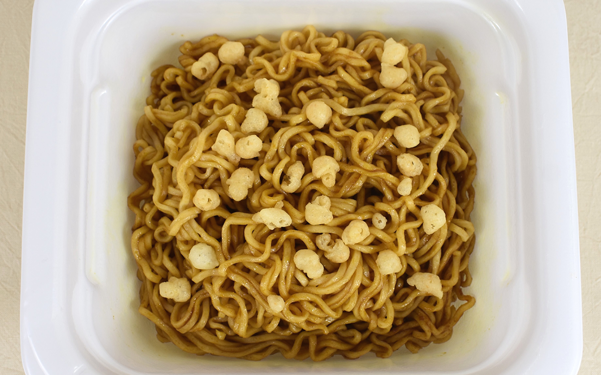 焼きそば×カレーせんという意外な組み合わせですが、気になるのは味つけ。東洋水産の公式リリースによると、ポークと醤油、野菜の旨味を効かせることによって「亀田のカレーせん」の味わいを再現しているそうです。