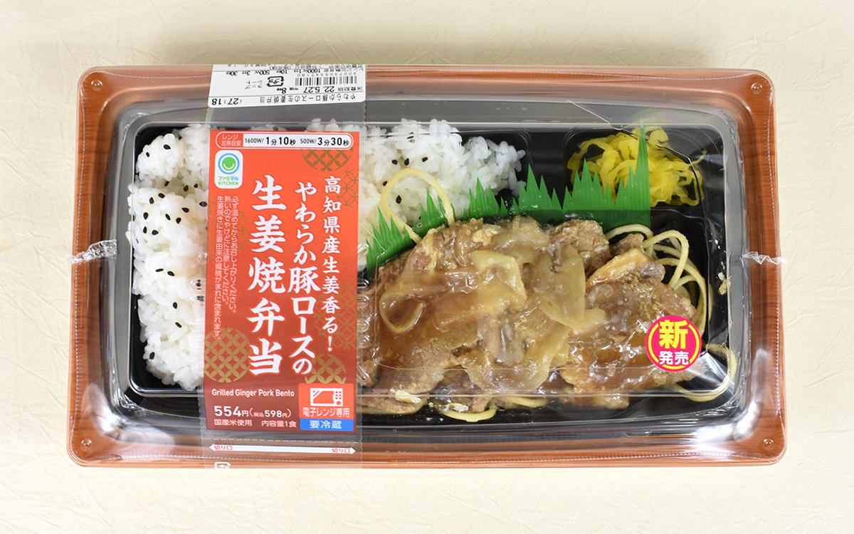 ワンランク上の味わいを実現した“やわらか豚ロースの生姜焼弁当”。味の決め手である高知県産の生姜を堪能したい人は、いますぐファミマに急ぎましょう。