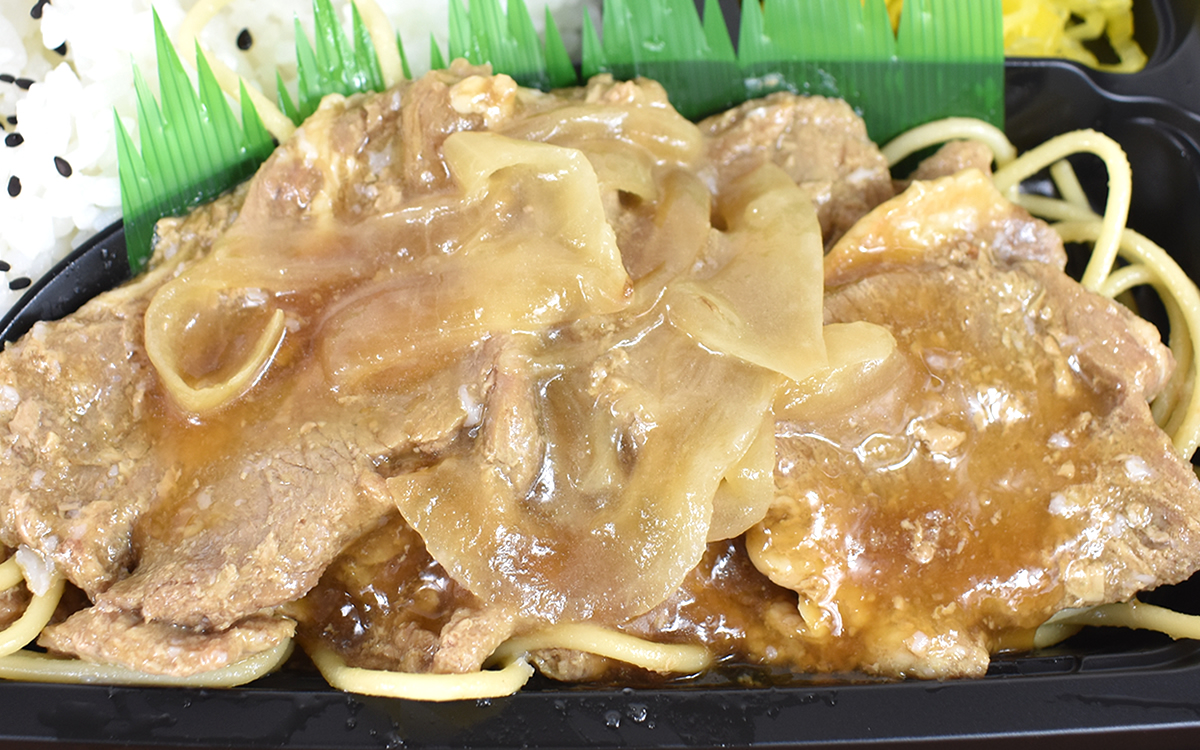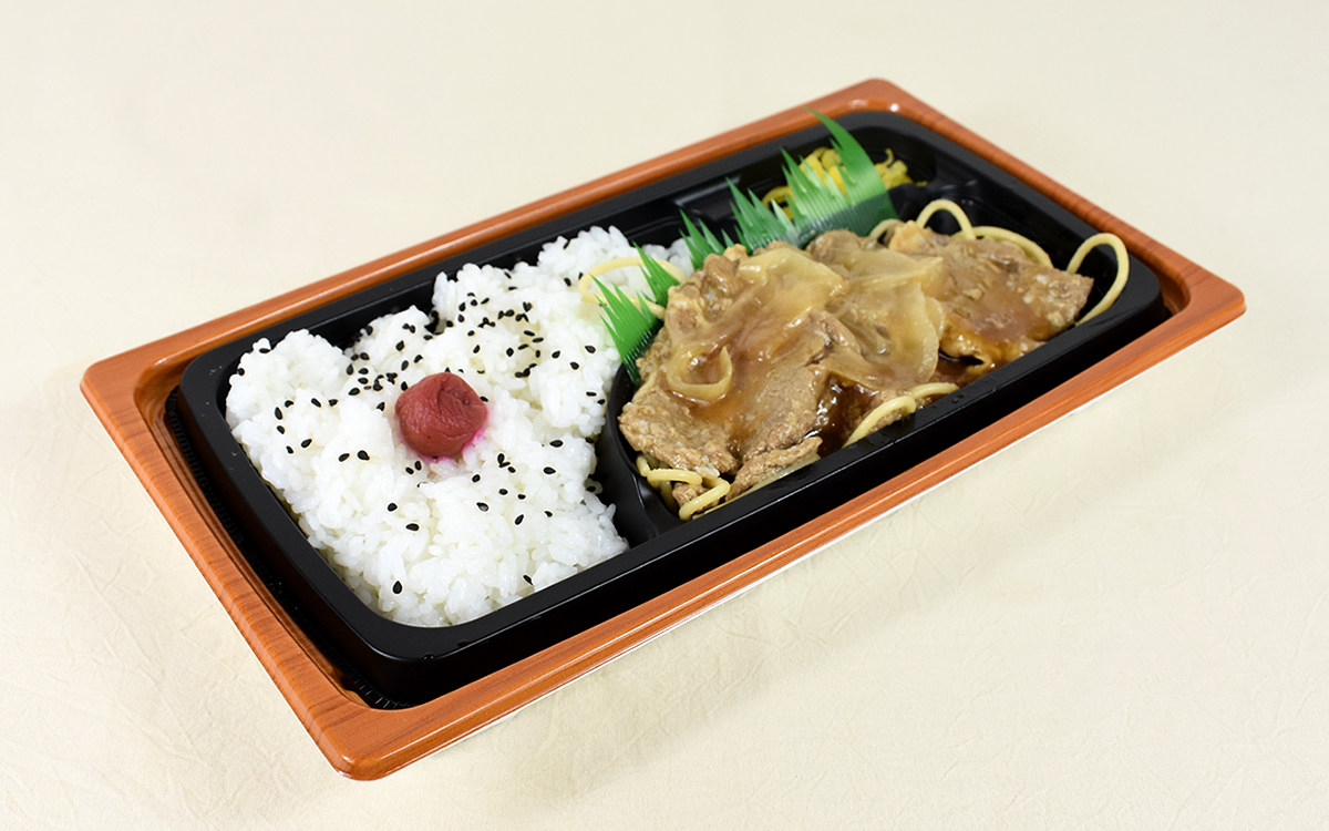 メインの具材となる肉は豚ロースを使用。高知県産の生姜と醤油、三温糖で味つけしたことにより、柔らかくてジューシーな豚の生姜焼きに仕上げています。副菜も豊富で、おしんこ、梅干し、スパゲッティもラインナップ。シンプルなメニューながらも豊富なテイストを堪能できるのがポイントです。