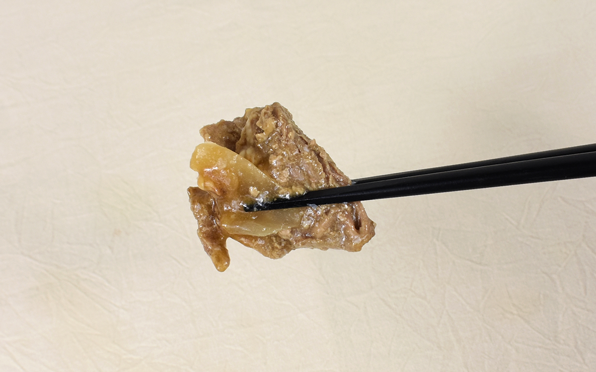 生姜の味がインパクト抜群なのに加え、やみつき度を高めるにんにくの後味もGOOD。飽きがこないほどのおいしさですが、時おり現れる玉ねぎのシャキシャキ食感はアクセントに。玉ねぎの他にスパゲッティもタレと相性バッチリなので、おかずとしても活躍します。