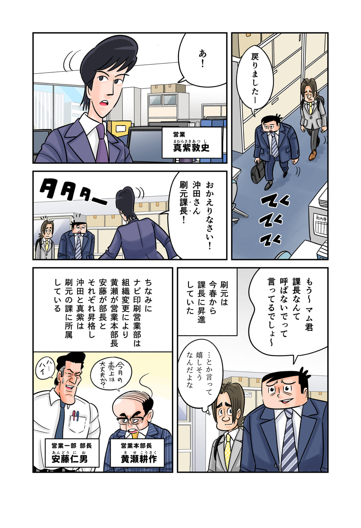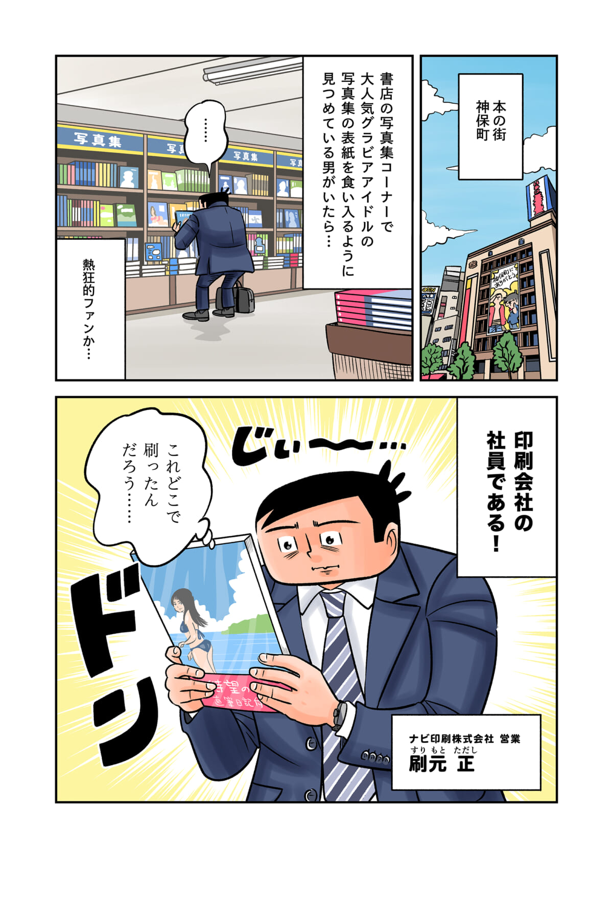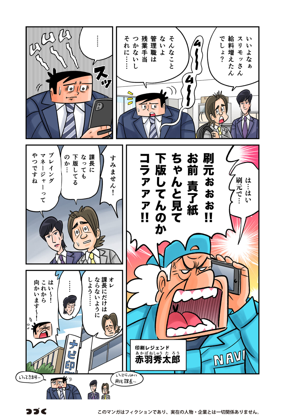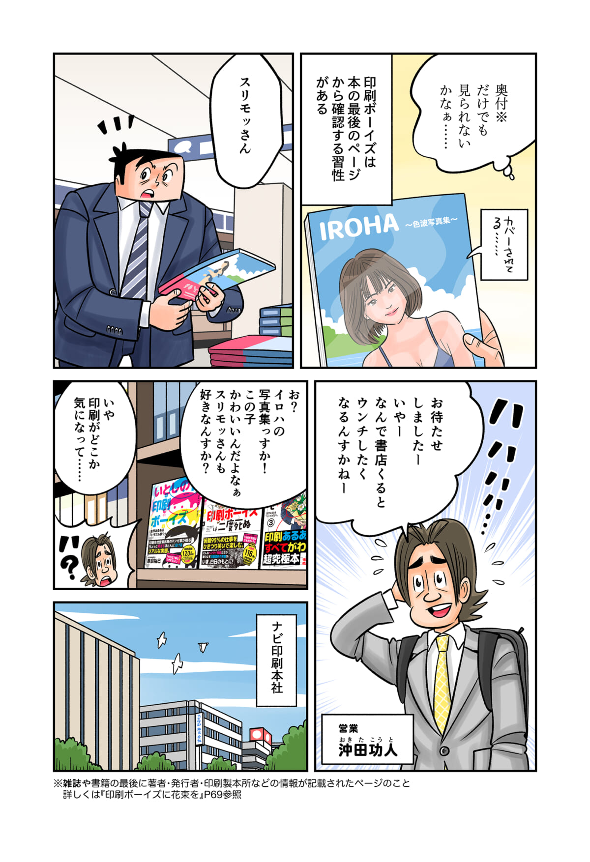 「印刷業界」の裏側をテーマにしたマンガ「今日も下版はできません! 」。ナビ印刷株式会社の営業マン・刷元 正(スリモト・タダシ)と沖田功人(オキタ・コウト)が印刷業界にまつわる「あるある」を、涙あり、「なるほど」や「へぇ~」ありで語っていきます。