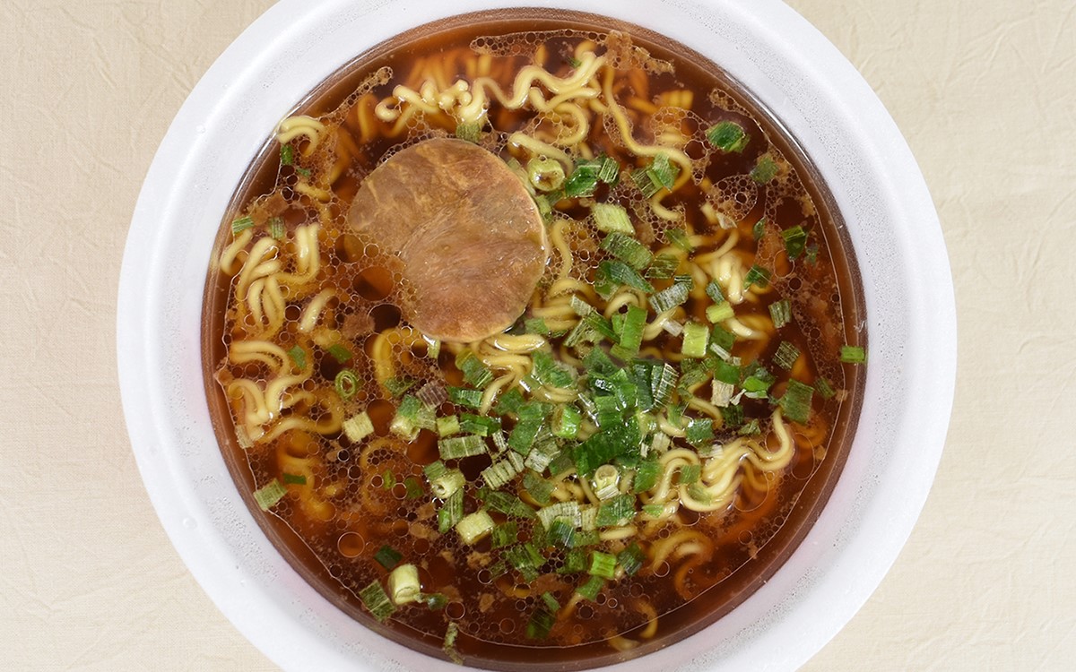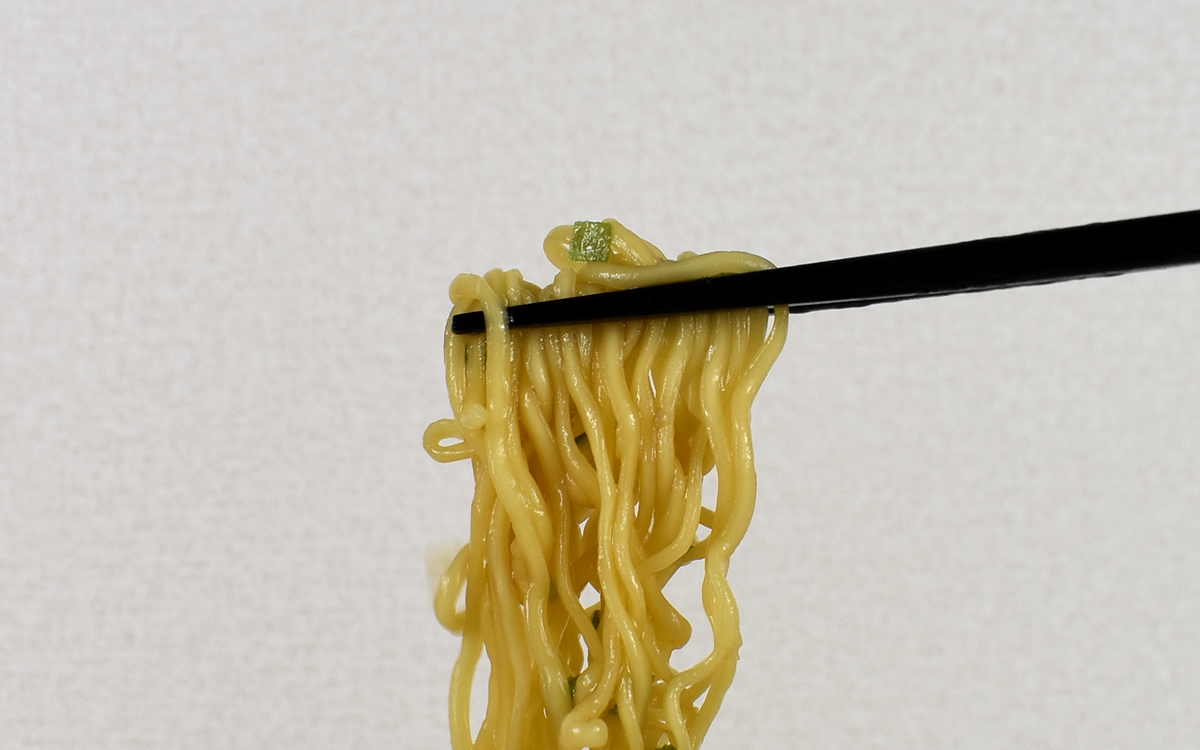 実際にインスタント麺を作ってみると、さっそく香ばしい醤油の匂いが漂ってきました。試しに一口麺をすすったところ、醤油味のスープが超濃厚。程よい塩味の中に煮干しエキスやチキンエキスが混ざっていて、コク深い味が舌を満たしてくれます。
