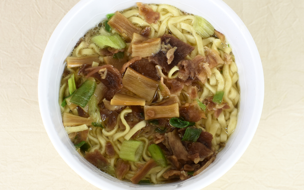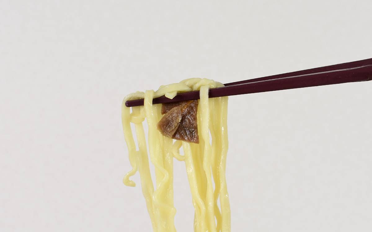 お湯を入れて約4分ほど待ってから、特製油を後入れしていざ実食。やや太めの麺は存在感がありつつも、歯切れがいいのでつるつると飲み込めます。トッピングされた具材も、まろやかな味わいのスープの中で食感が良いアクセントに。特にコリっとしたメンマは独特の食感で、ずっと噛んでいたくなるほどでした。