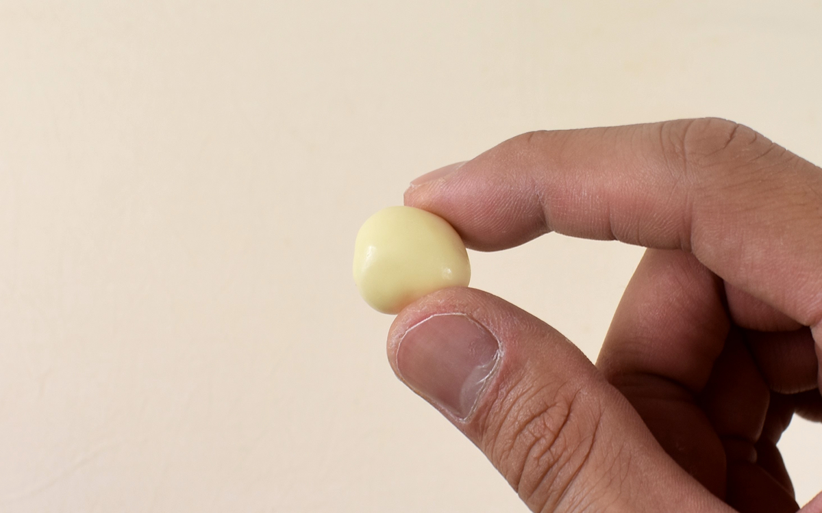 試しに1粒ホワイトチョコを食べてみたところ、大きさのわりに甘さは強め。1粒食べるだけでも、ホワイトチョコのまろやかな甘みがしっかり舌全体で感じられます。中に入ったマンゴーも絶妙な柔らかさで、ムニュっとした食感がGOOD。フルーツの酸味がホワイトチョコをあっさりめの味に保っていて、食べやすい甘さバランスを演出していました。