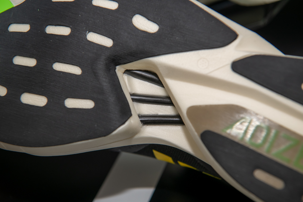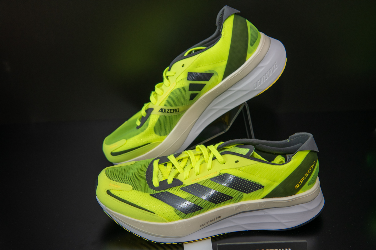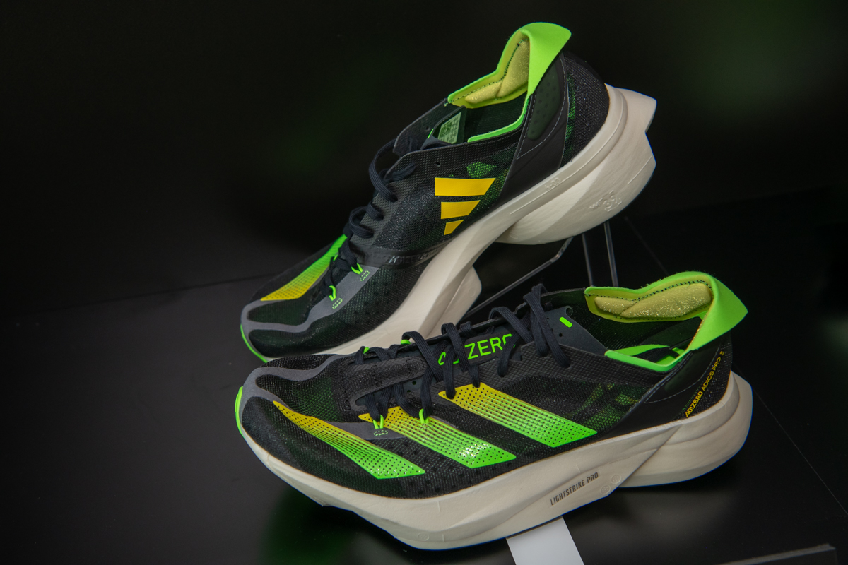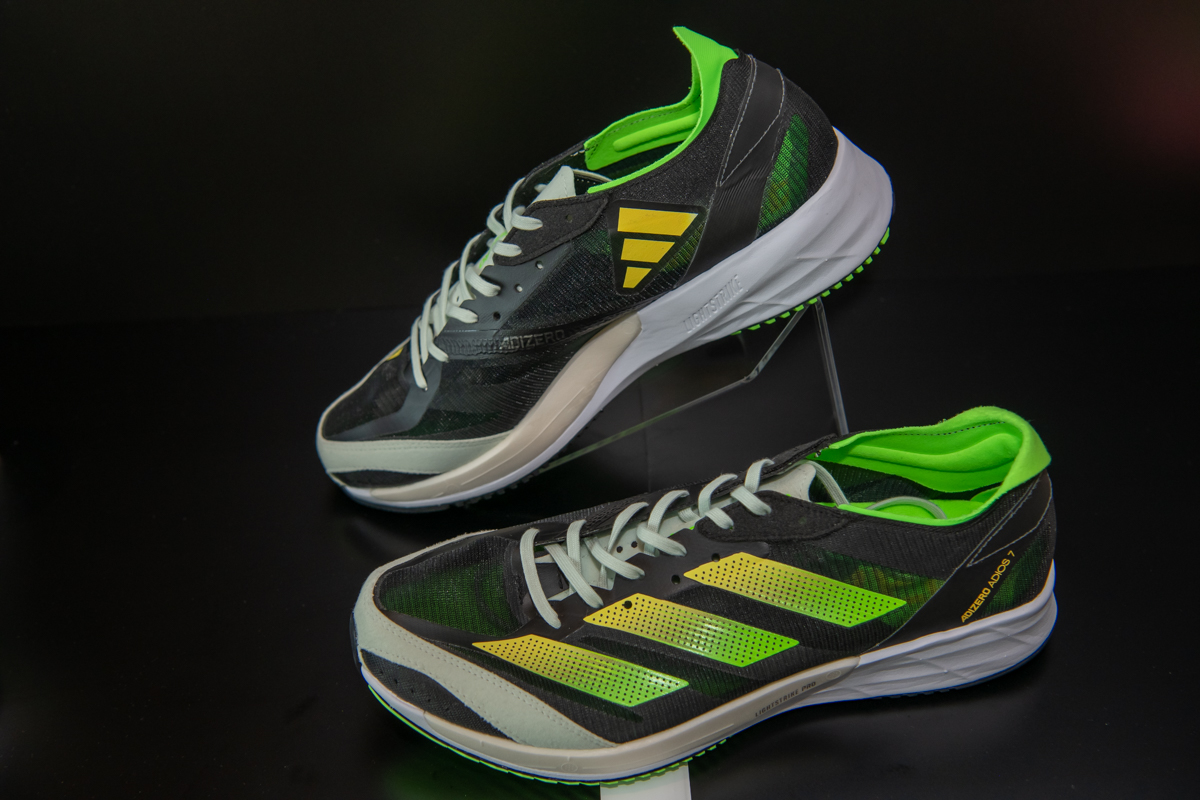 会場内ではアディゼロシリーズが打ち出してきた数々の記録とそのランニングシューズが展示されていました。
