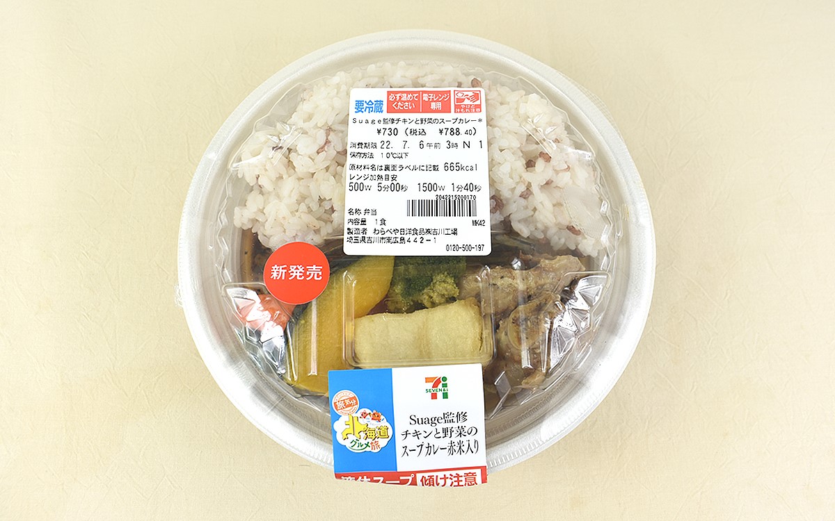 北海道・札幌が発祥とされ、今やすっかり全国的な知名度を獲得したスープカレー。観光や出張で札幌を訪れた際、専門店で堪能したことがある人も多いと思います。「地元でも食べれるけど本場の味を楽しみたい!」という人には、セブン-イレブンで販売中の「Suage監修 チキンと野菜のスープカレー」(788円/税込)がオススメ。どのような味わいを楽しめるのか、じっくり確かめていきましょう。
