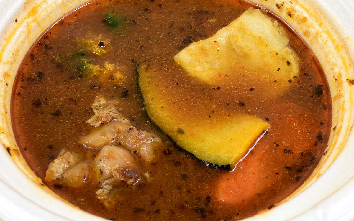 監修をおこなった「Suage」は、2007年に札幌で創業して以来ファンから愛され続けているスープカレー専門店。東京エリアのほか、韓国・シンガポール・台湾など海外にも出店している実力派です。スープはもちろん旨味を凝縮した“素揚げ”の具材が持ち味で、今回購入した商品にも素揚げされた具材がたっぷり。