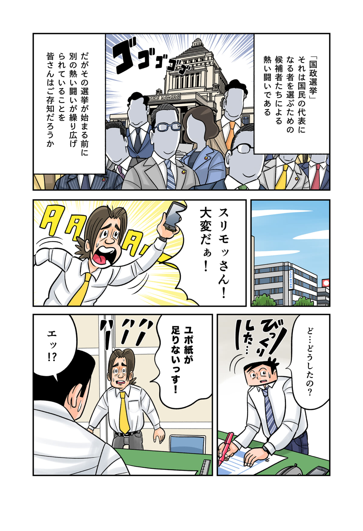 「印刷業界」の裏側をテーマにしたマンガ「今日も下版はできません! 」。ナビ印刷株式会社の営業マン・刷元 正(スリモト・タダシ)と沖田功人(オキタ・コウト)が印刷業界にまつわる「あるある」を、涙あり、「なるほど」や「へぇ~」ありで語っていきます。
