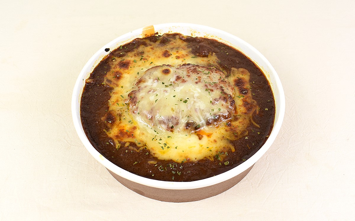 肉の旨味だけでなく、ハンバーグがまとったナチュラルチーズの存在も要注目。カットしたハンバーグを口へ運ぼうとした際に思いのほかチーズが伸び、切れるまで高々とスプーンを持ち上げたほどです。チーズ特有のコクも印象的で、濃厚な味わいを存分に楽しませてくれます。