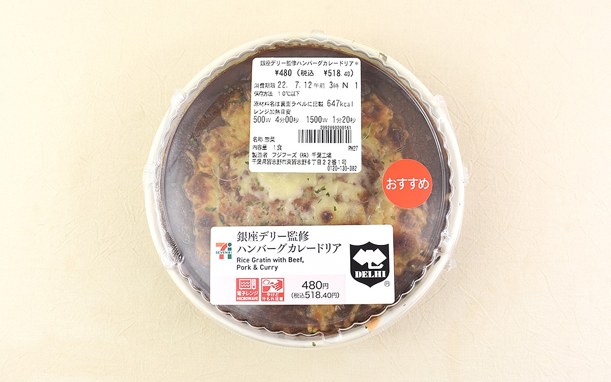 国民食の1つに数えられ、子どもから大人まで幅広い世代に愛されているカレー。かくいう私も大好物のメニューで、汗ばむほどの暑い日でも体がカレーを求めてくる日があります。無限に湧き上がってくる欲求を満たすべく、今回はセブン-イレブンで販売中の「銀座デリー監修 ハンバーグカレードリア」(518円/税込)をセレクト。カレー+ドリア+ハンバーグという魅惑的な組み合わせとあっては見逃すことができません。