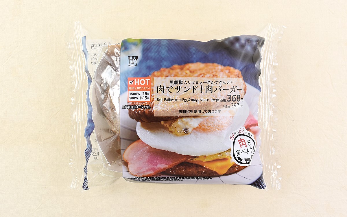 子どもから大人まで幅広い世代に愛され、苦手だという人を探す方が難しいファストフードの代表格・ハンバーガー。バンズでサンドされたパティや野菜、ソースの種類によって様々な味わいを楽しめますよね。コンビニでも購入できる人気メニューですが、ローソンで思わぬパッケージを発見。インパクト抜群な名称に惹かれて、「肉でサンド! 肉バーガー」(397円/税込)という商品を購入してみました。