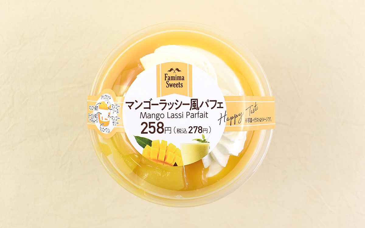 「マンゴーラッシー風パフェ」は、ファミリーマートが展開する「マンゴーデザート特集」にラインナップされた商品の1つ。ラッシーとはカレーと相性の良いヨーグルトドリンクのことで、マンゴーラッシーの味わいをカップスイーツのパフェに仕立てているのが特徴です。