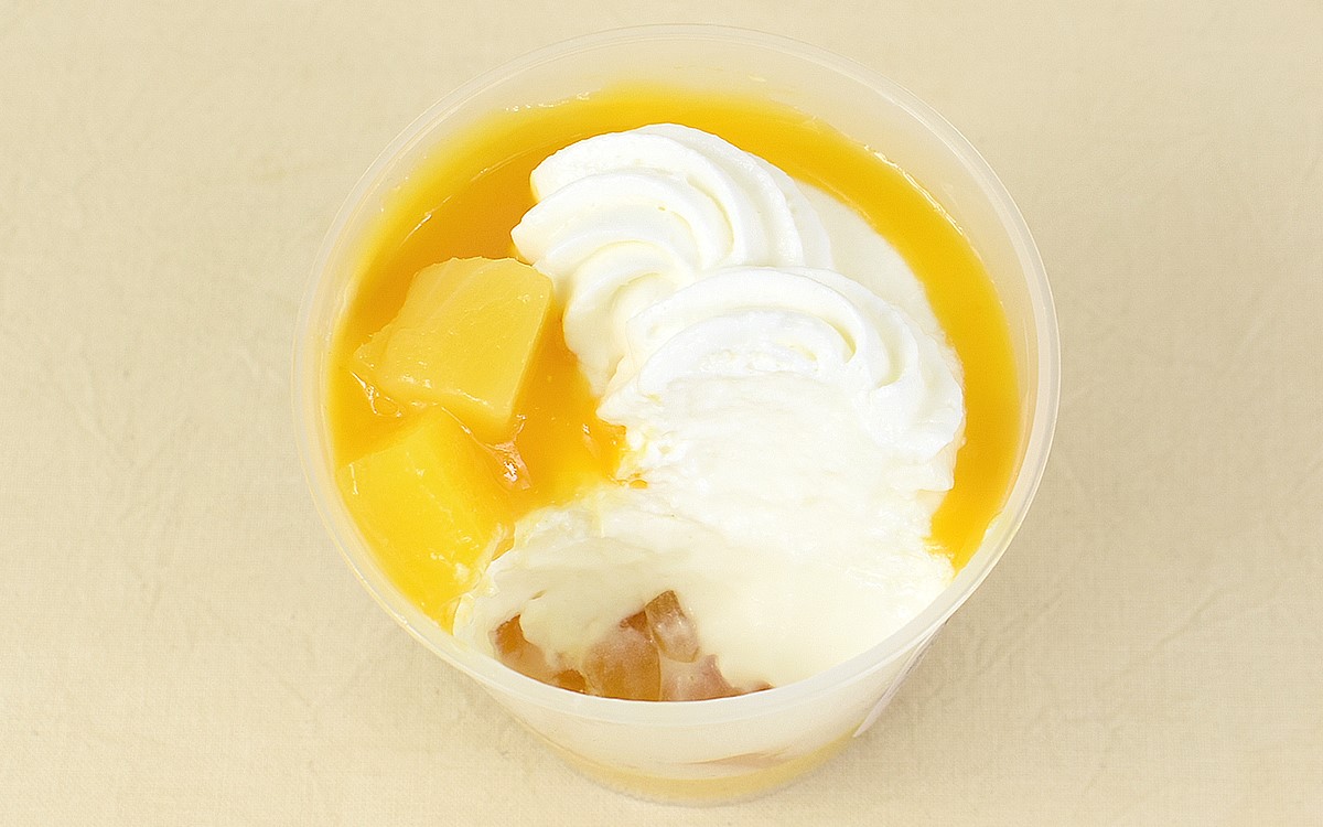 既に十分な満足感を得ていますが、これで終わらないのが同商品のすごいところ。なんと最下層には、アルフォンソ種マンゴーピューレを使用したマンゴープリンがスタンバイ。最後の最後までなめらかな口あたりとマンゴーの持ち味を感じられて、大満足に終わった一品です。