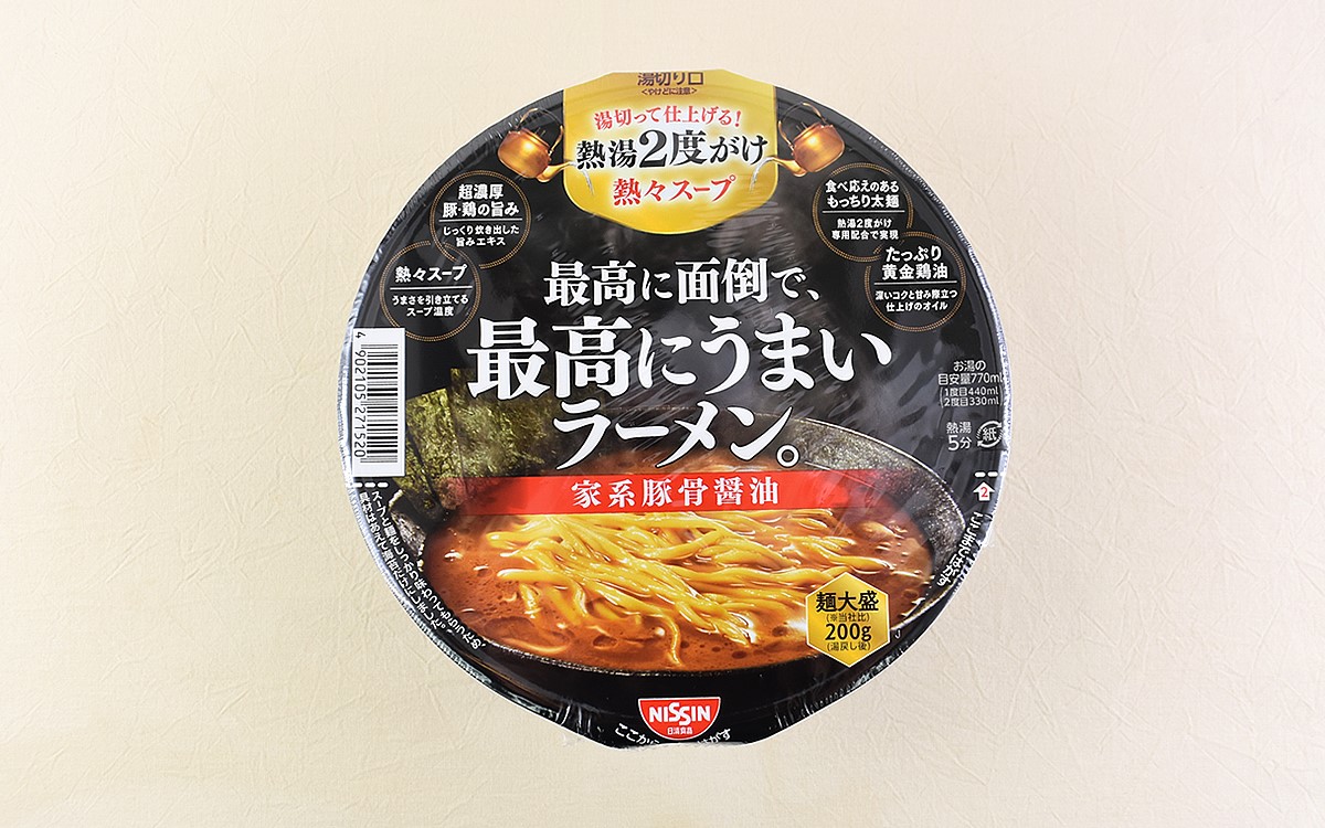 コンビニで販売されている多種多様なカップ麺。定番ブランドから有名店とのコラボ商品まで多岐にわたり、どれを選ぶかパッケージとにらめっこする人は多いと思います。かくいう私もその1人ですが、セブン−イレブンで強烈なインパクトを放つカップ麺を発見。その名も「日清 最高に面倒で、最高にうまいラーメン。家系豚骨醤油」(429円/税込)という商品を購入してみました。自ら「最高に面倒」と言い切るワケは…?