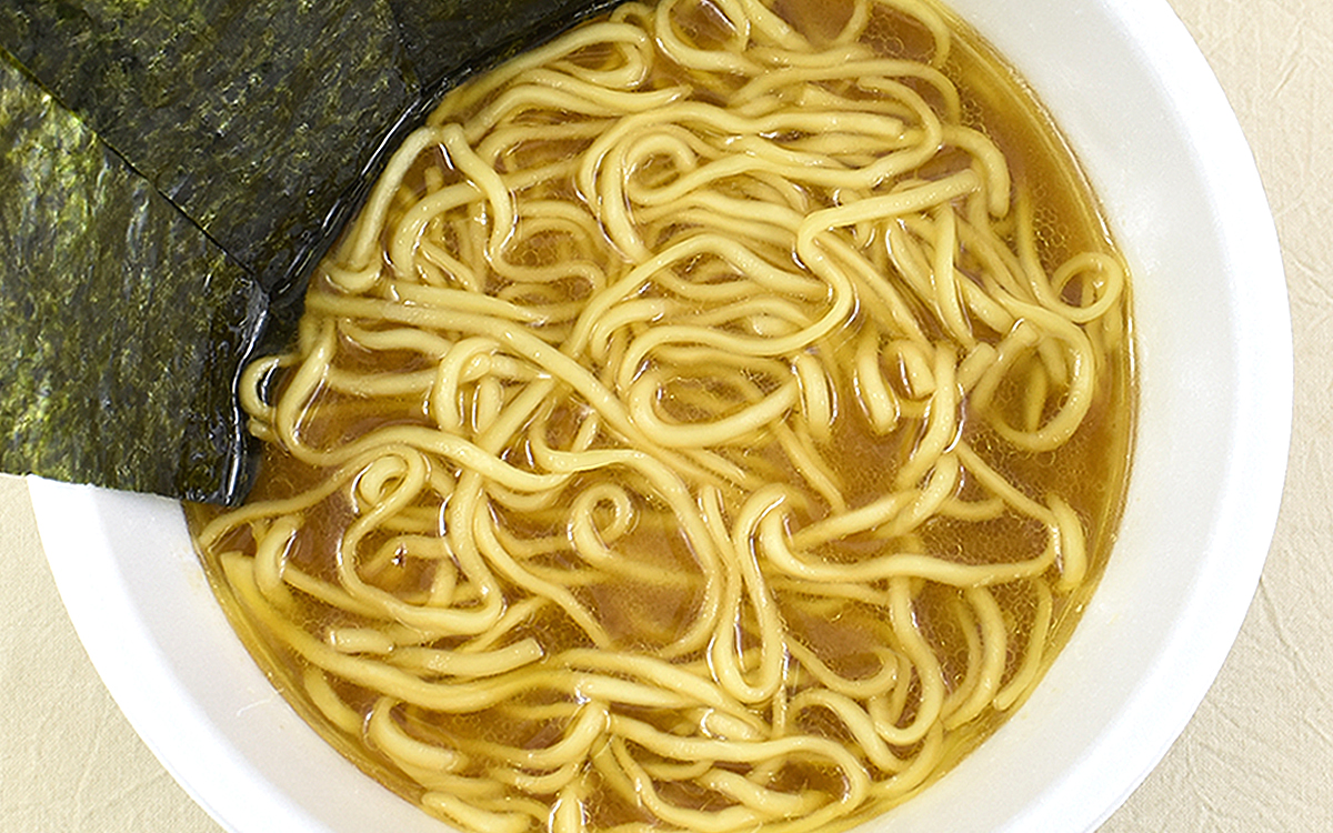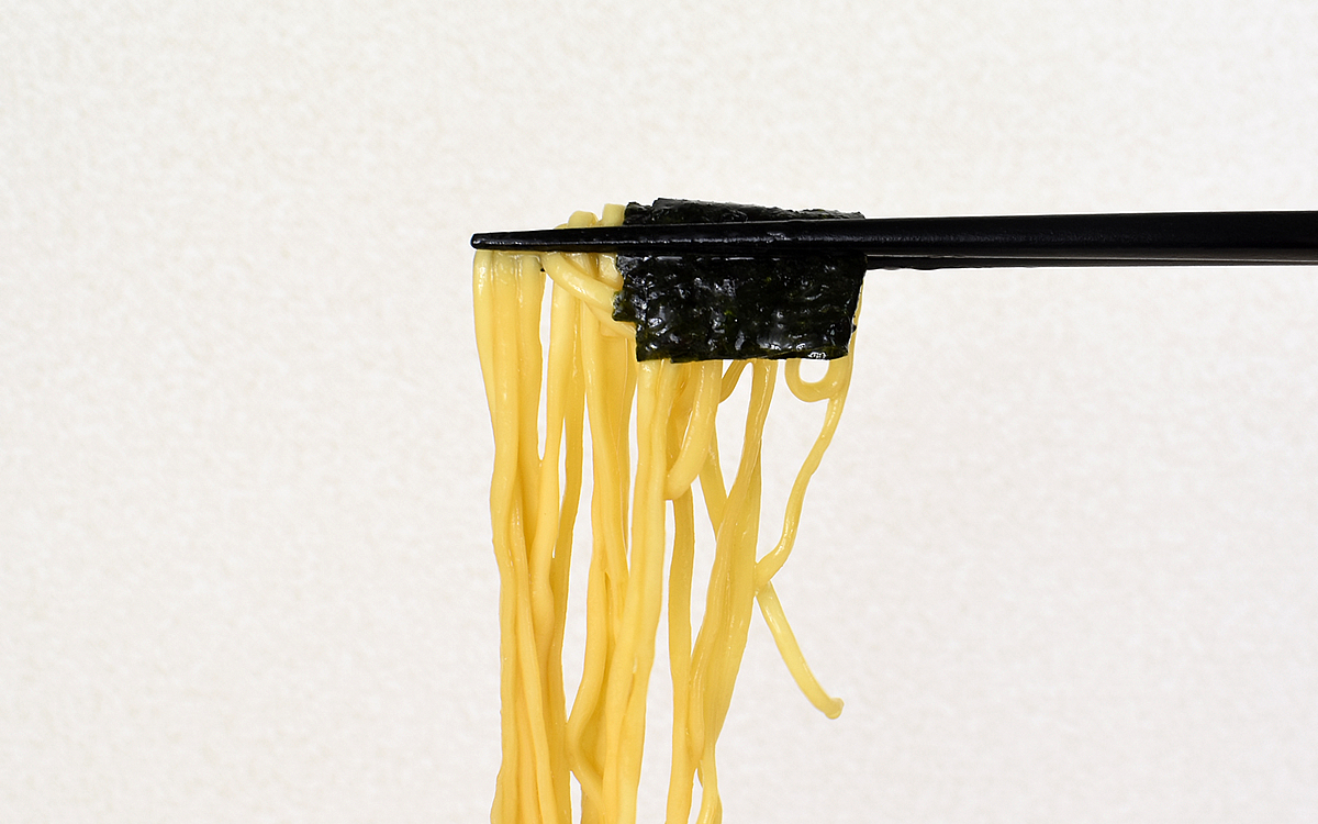 また、焼きのりしか入っていないからこそ麺の歯ごたえが際立つのも事実。“熱湯2度がけ専用配合”によって生まれた太麺はもっちり感にあふれていて、これでもかと食べごたえを感じさせてくれます。