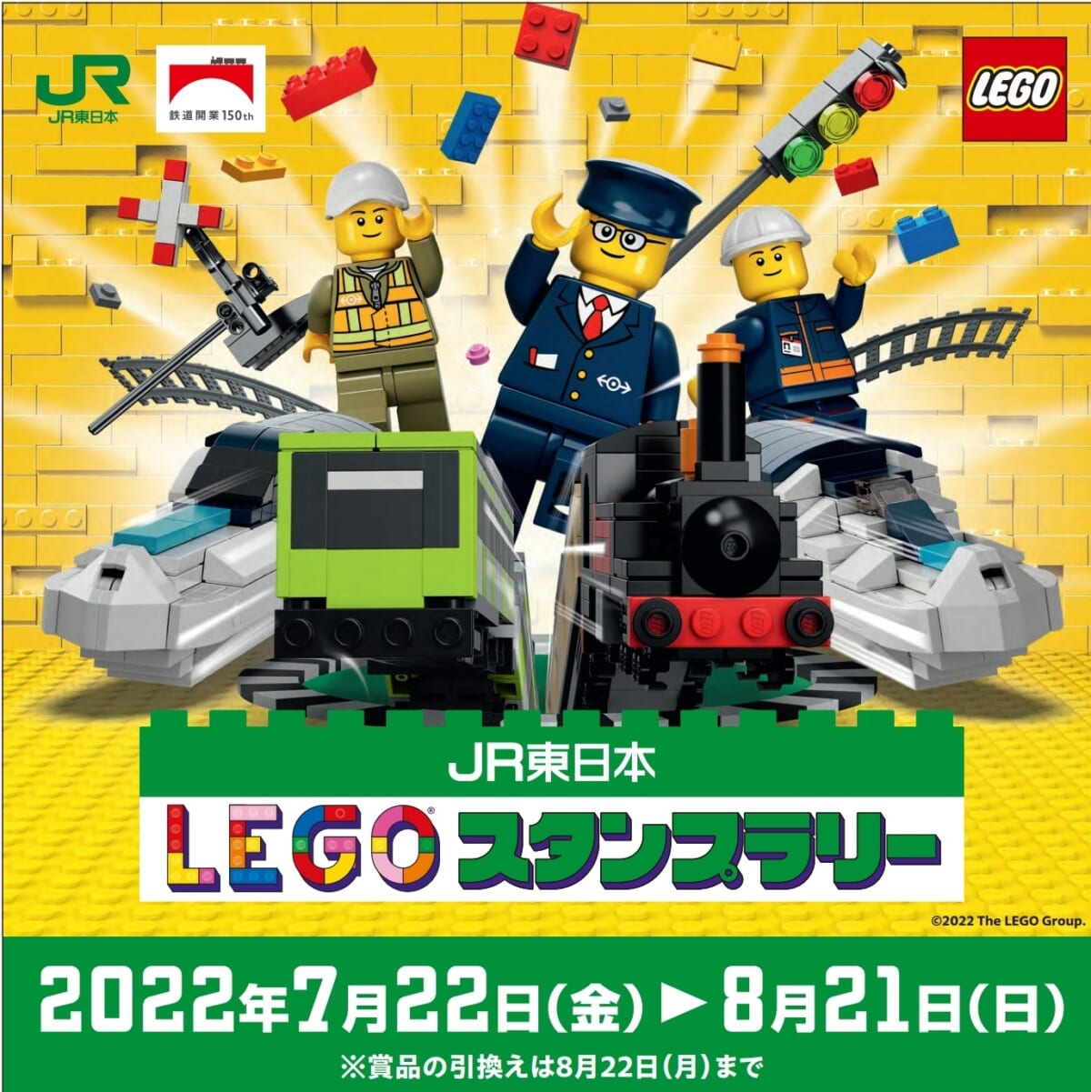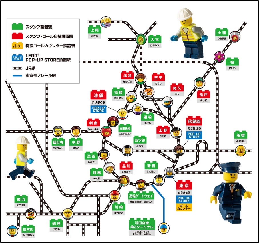 中でも大規模なのが、レゴの90周年と、新橋〜横浜間の鉄道開業150年を同時に祝うイベント「レゴ(R)スタンプラリー」です。こちらはJR東日本とのコラボレーションによる、スタンプラリーになります。