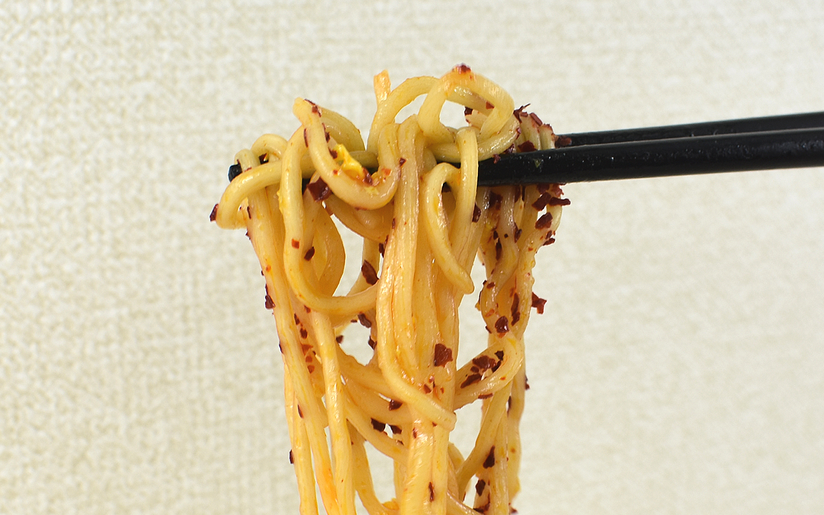 唐辛子&にんにくの主張を感じさせる味わいですが、決してそれだけにならないのが同商品の大きな魅力。たれは豚ガラと塩味がしっかり効いているため、唐辛子がもたらす刺激の中に奥深い風味も一緒に広がっていきました。