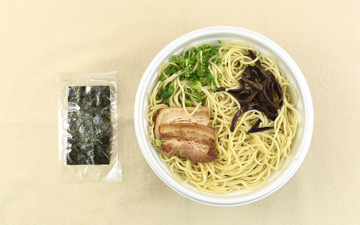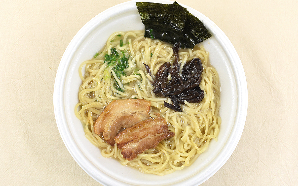 同商品の監修を手がけた「博多一双」は、九州のターミナル・博多駅近くに本店を構える人気のラーメン店。細かい泡が浮かぶスープは濃厚かつクリーミーな風味が特徴で、ラーメン愛好家からは“豚骨カプチーノ”と呼ばれています。また麺にも強いこだわりを持ち、製麺メーカーと試行錯誤の末に完成したのが特注の細平打ち麺。味にうるさい博多っ子からも愛され、なんと替え玉率は8割にも及ぶそうです。