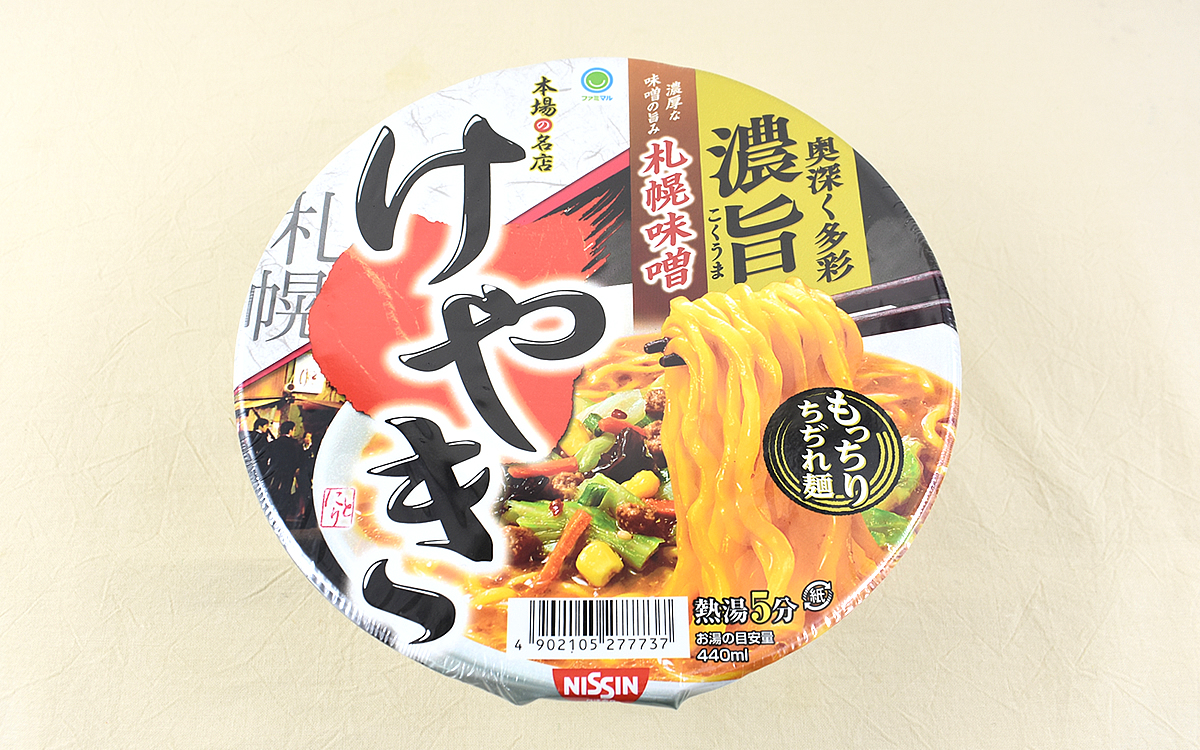 北海道・札幌で誕生して以来、幅広い世代から愛され続けている“味噌ラーメン”。芳醇な香りと味わいがなんとも魅力的で、たっぷりの野菜を中心とした具材も食べごたえがありますよね。醤油・塩・豚骨に並ぶ人気のスープだけに、関連商品は数えきれないほど。そこで今回は、ファミリーマートで販売中の「けやき札幌味噌ラーメン」(278円/税込)をセレクトしてみました。