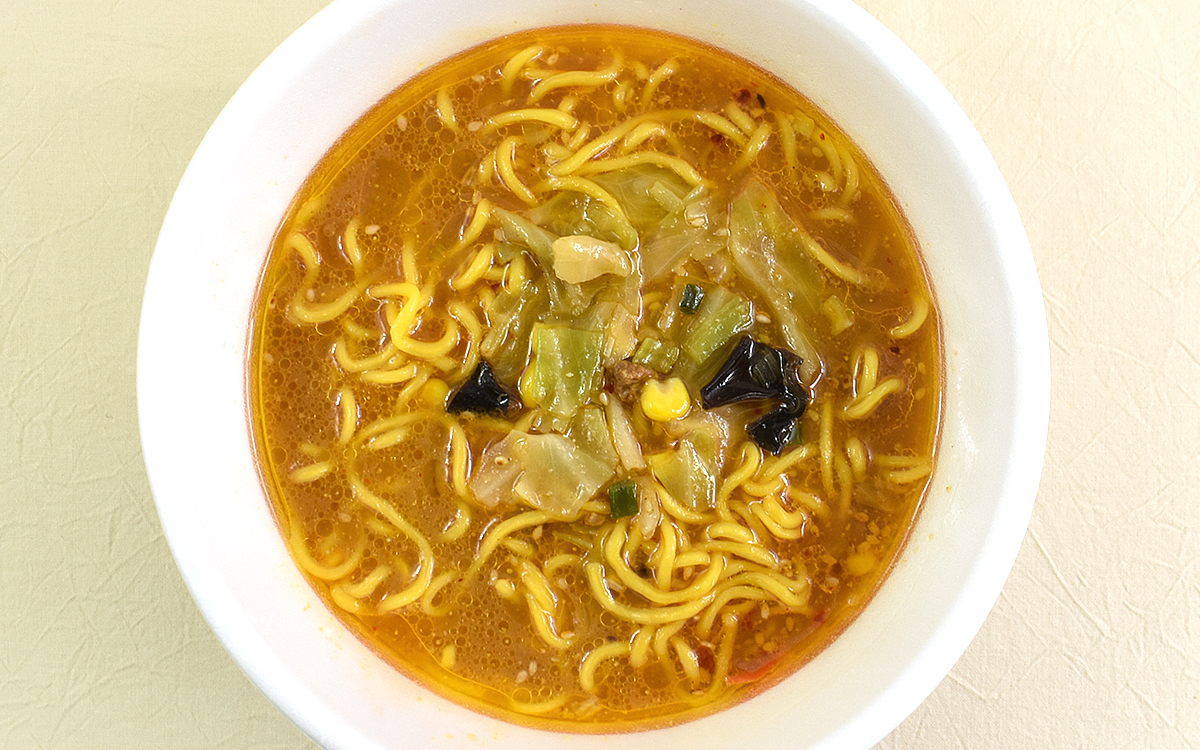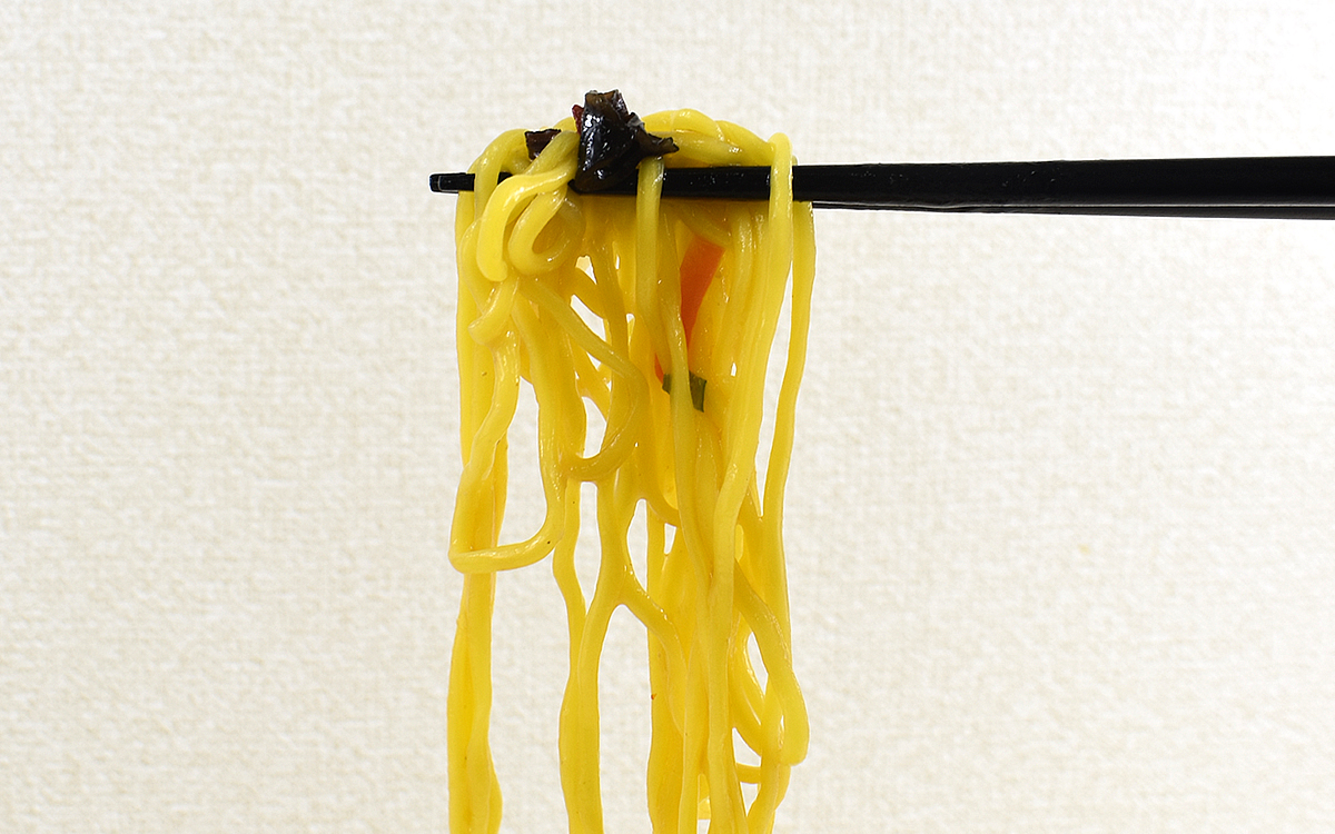 商品に使用されている麺はスープがよく絡むちぢれ麺。乾麺とは思えないツルっとした口あたりが印象的で、もちもちな食感の中にも確かにコシを感じさせてくれます。スープとの相性もバッチリで、味噌の味わいをしっかりまとったのどごしもGOOD。