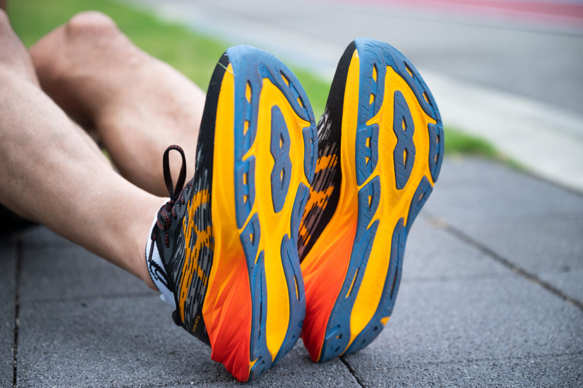 「前足部のフォームが変形しないと、きちんと踏み込めません。そのためロッカー(つま先を反らせる形状)も抑えた設計にしています。ドロップ(つま先と踵の高低差)も8㎜と、見た目とは異なりマイルドです。履いてもらうと、奇異ではないことに気付いてもらえるはずです(笑)」(益本さん)