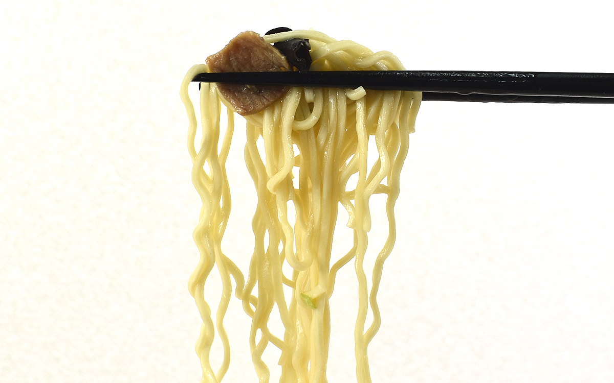 同商品に使用されているかやくは、味つけ豚肉・きくらげ・ねぎというシンプルな組み合わせ。とはいえ豚骨スープと絡み合うことで、各素材がそれぞれ存在感を発揮してくれます。ところどころ脂身をまとった豚肉は、噛めば噛むほどにじみ出てくる旨味がGOOD。キクラゲは独特な食感が気持ちよく、たっぷり入ったねぎもこうばしい香りを添えてくれました。