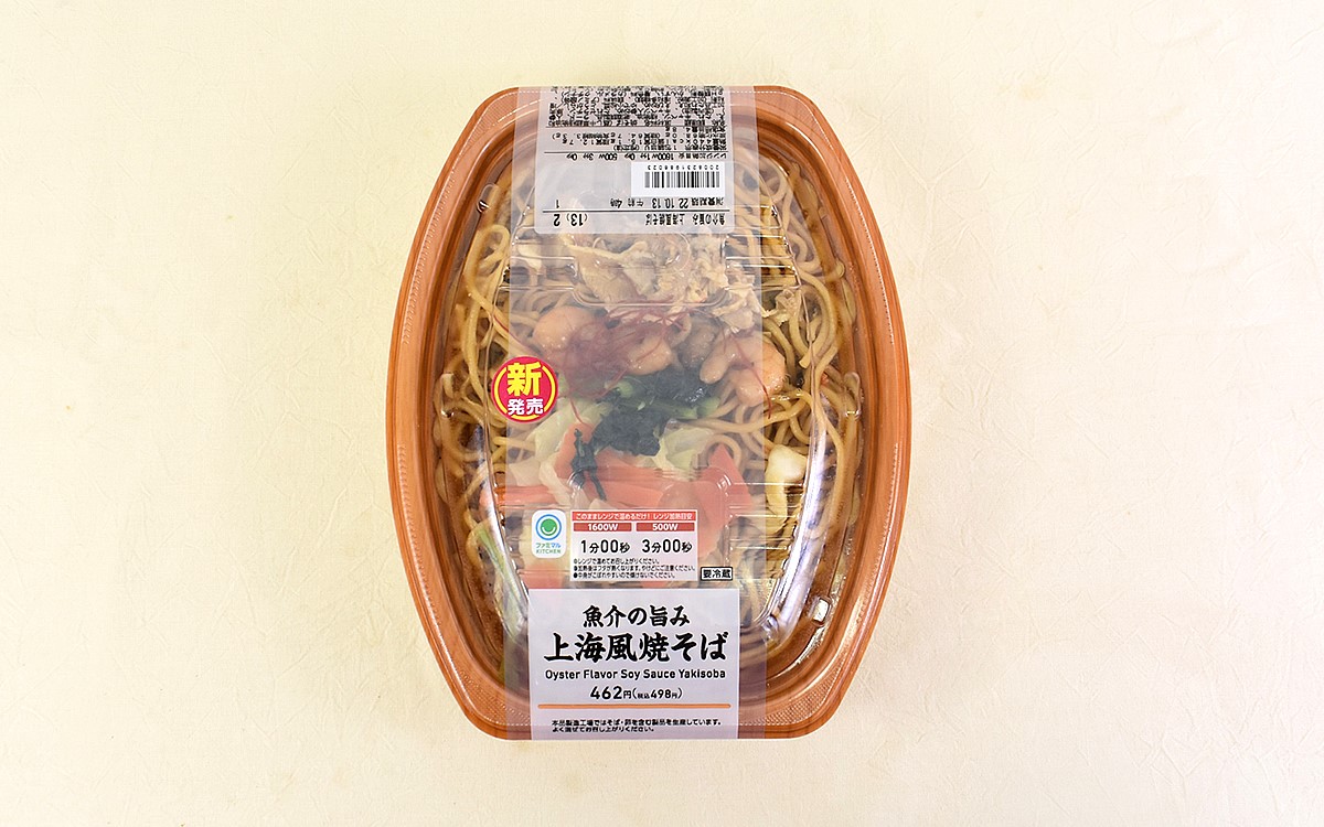 「魚介の旨み 上海風焼そば」は、ファミリーマートのプライベートブランド「ファミマル」にラインナップされたメニューの1つ。従来のソース焼そばはウスターソースが使用されていますが、同商品はオイスターソースを用いているのが特徴です。牡蠣を原材料にしたソースということもあり、商品名に冠するほどの“魚介の旨み”に期待が膨らむばかり…。