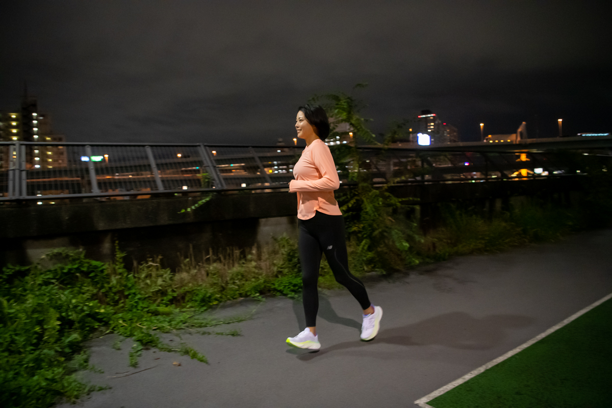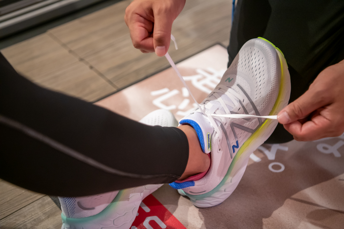 最新のFresh Foam(フレッシュフォーム)のランニングシューズを試し履きできるということで、「Fresh Foam X(フレッシュフォームエックス) More(モア) v4」を履いて、まずは“ととのう”スロージョグスタート!