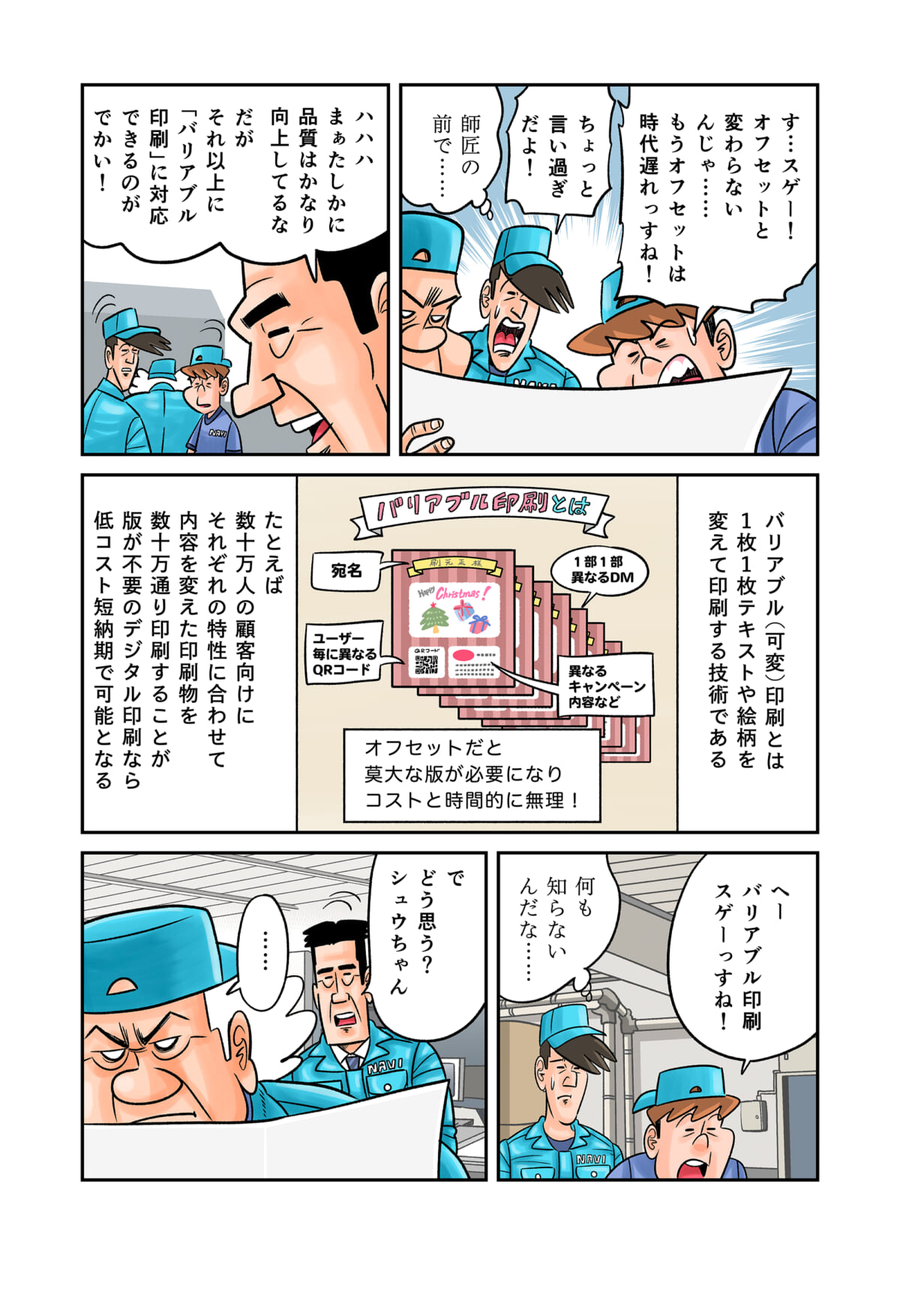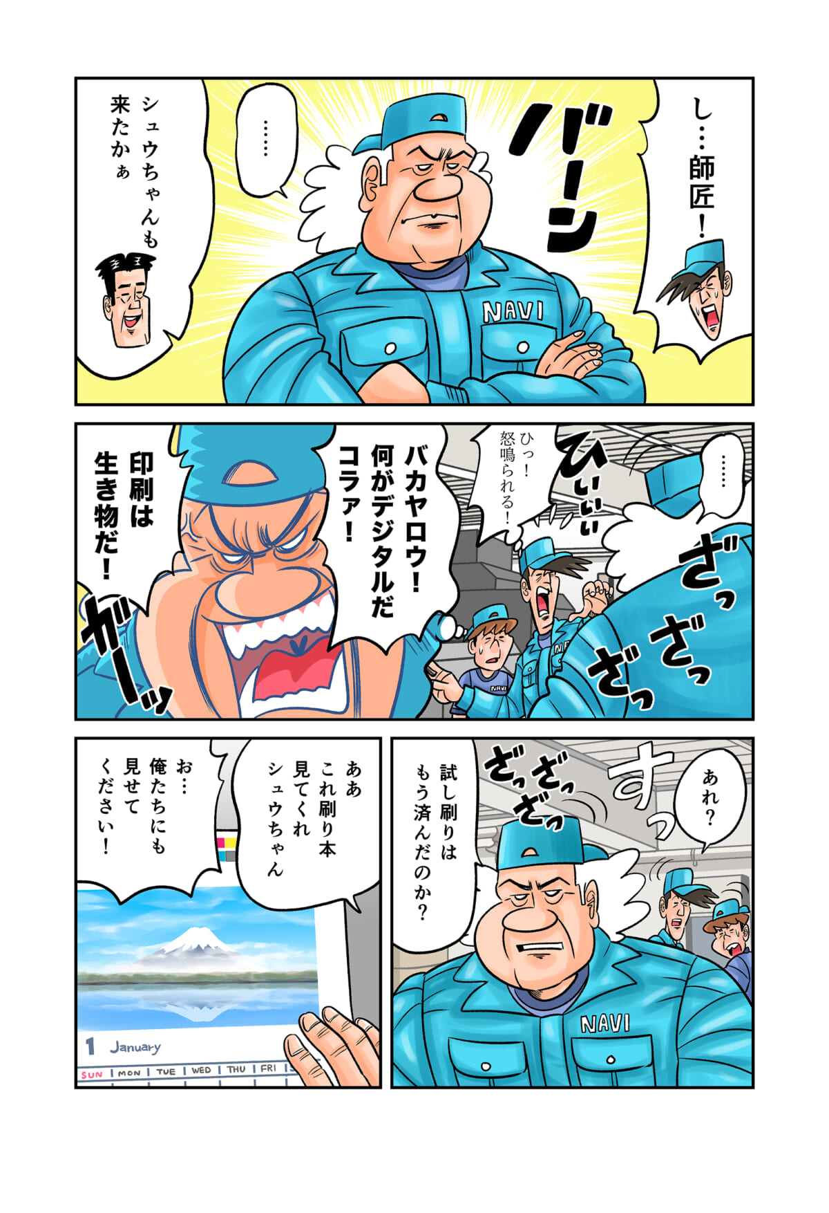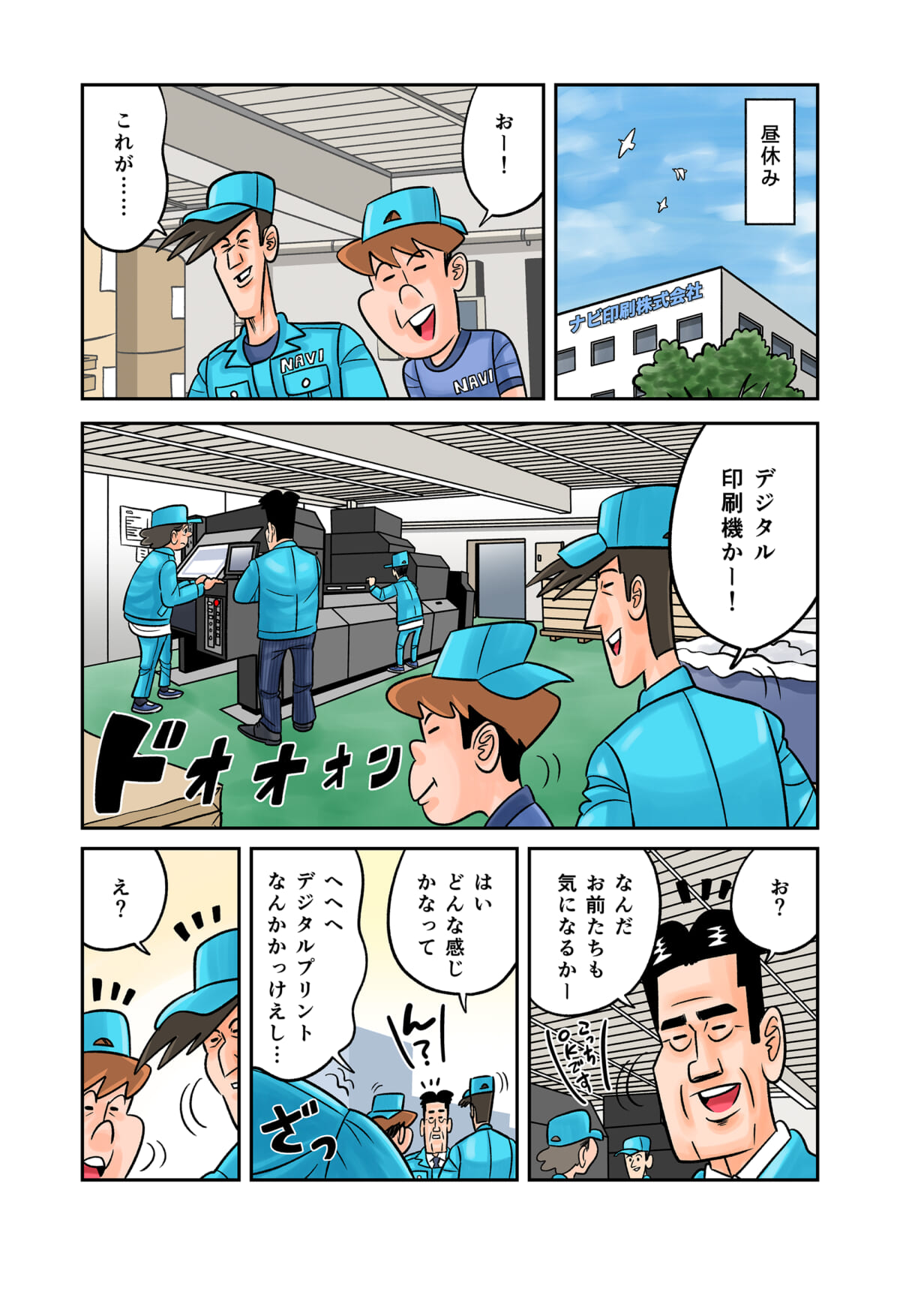 「印刷業界」の裏側をテーマにしたマンガ「今日も下版はできません! 」。ナビ印刷株式会社の営業マン・刷元 正(スリモト・タダシ)と沖田功人(オキタ・コウト)が印刷業界にまつわる「あるある」を、涙あり、「なるほど」や「へぇ~」ありで語っていきます。