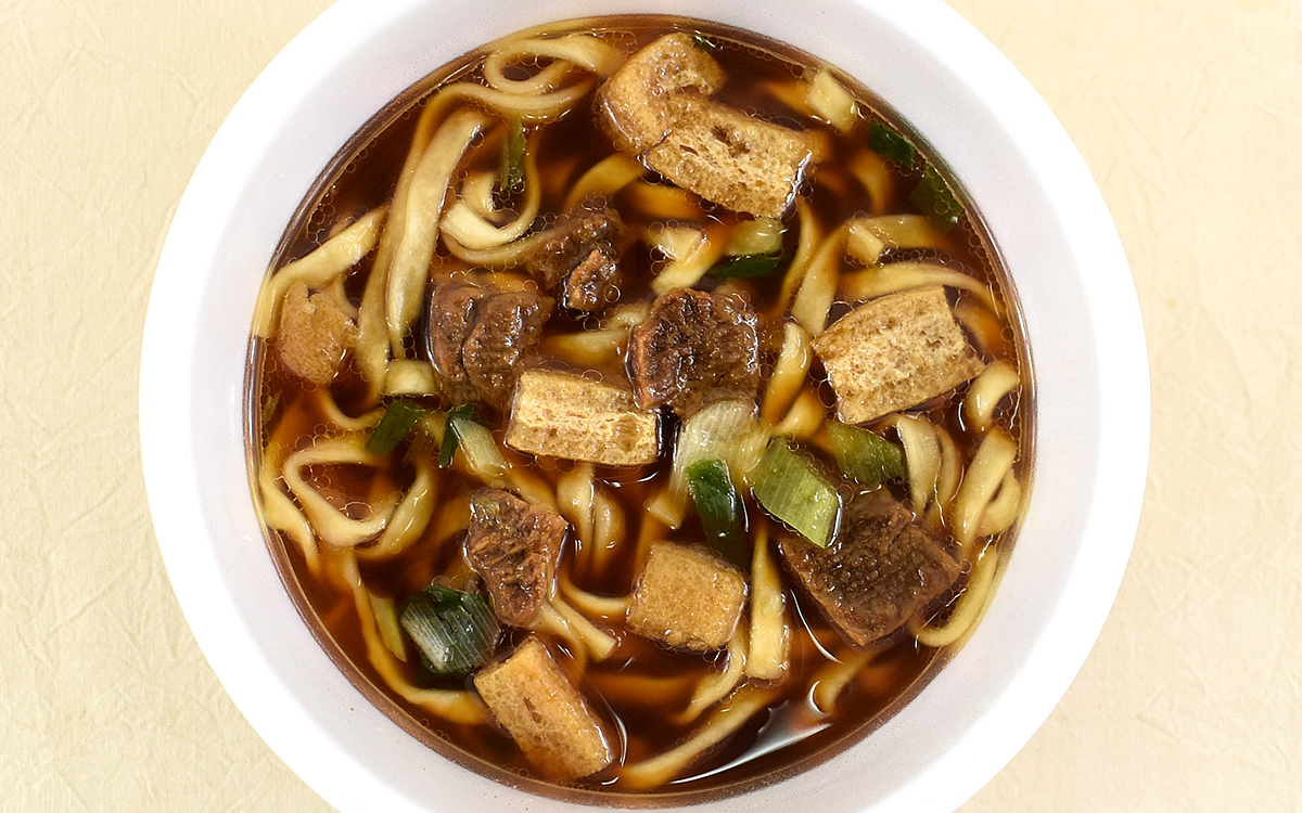 トッピングの大豆ビーフはサイズこそ控えめでも、しっかりコクが伝わってきて噛むごとに旨みがじゅわっ。油揚げからにじみ出る味わいやネギの香りも、すき焼き風のつゆにぴったりです。ちなみに「卵黄を入れるとさらに旨い!」というアドバイスも添えられているので、気になる人は試してみては?