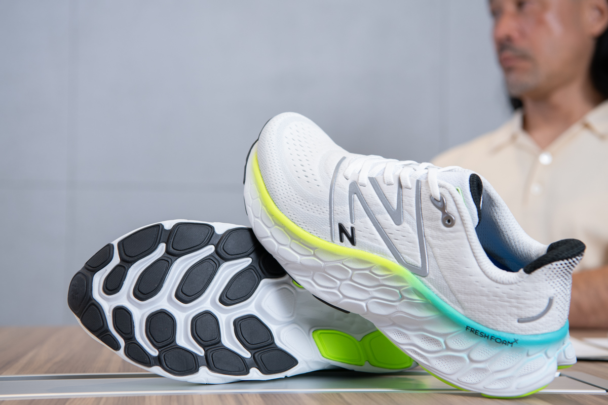 このシューズとは、ニューバランスの「フレッシュフォーム」シリーズで、いちばん厚底、いちばん軟らかいという触れ込みの「Fresh Foam X MORE v4」だ。それを語るのは、ニューバランスのランニングシューズ企画の間宮 葵さんである。
