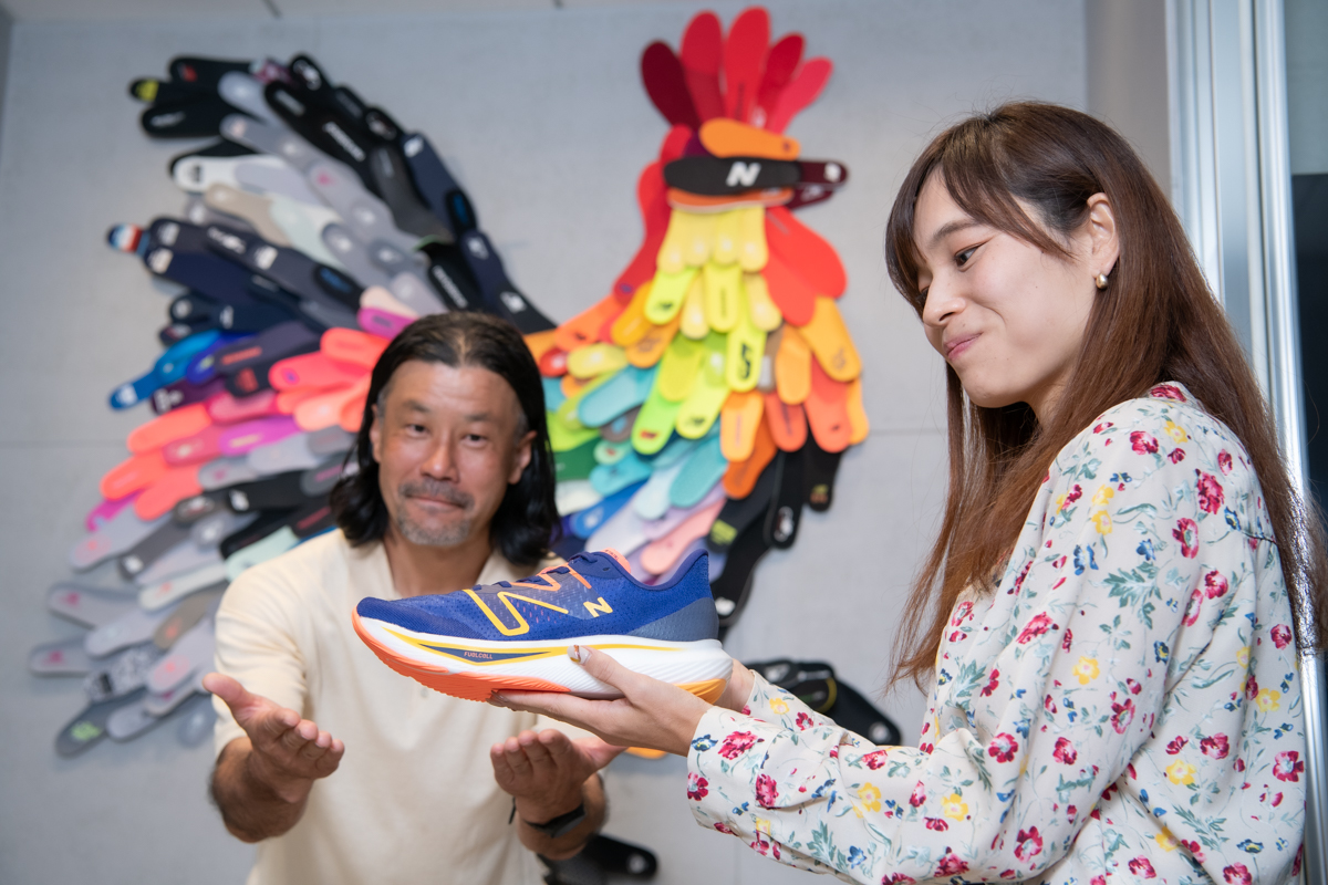 「FuelCell Rebel v3は、楽しく走る“フィットネスランシューズ”とカーボンプレート入りの“レースシューズ”の中間に位置付けられます」と、驚きの話を語るのは、ニューバランスジャパンのランニングシューズ企画の間宮葵さん。