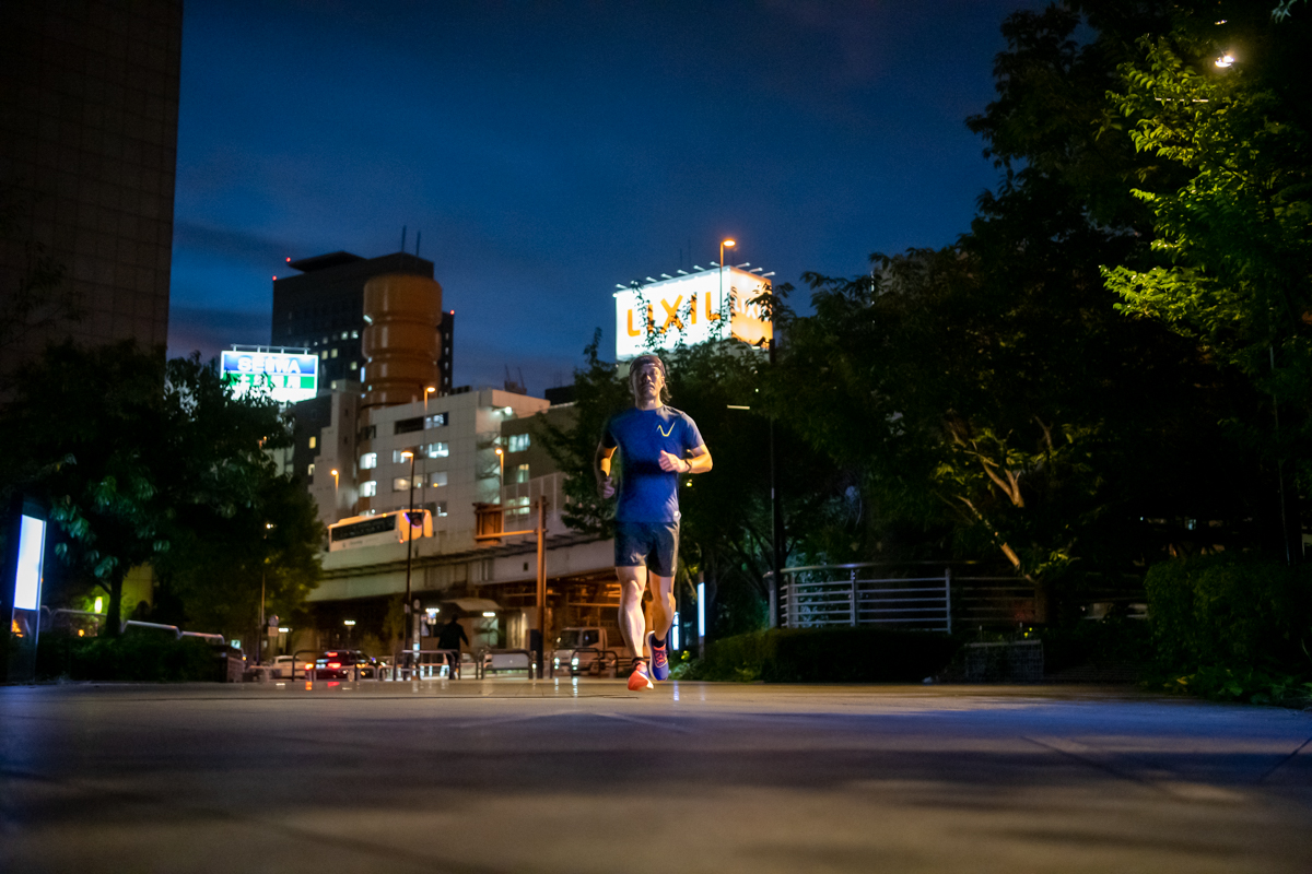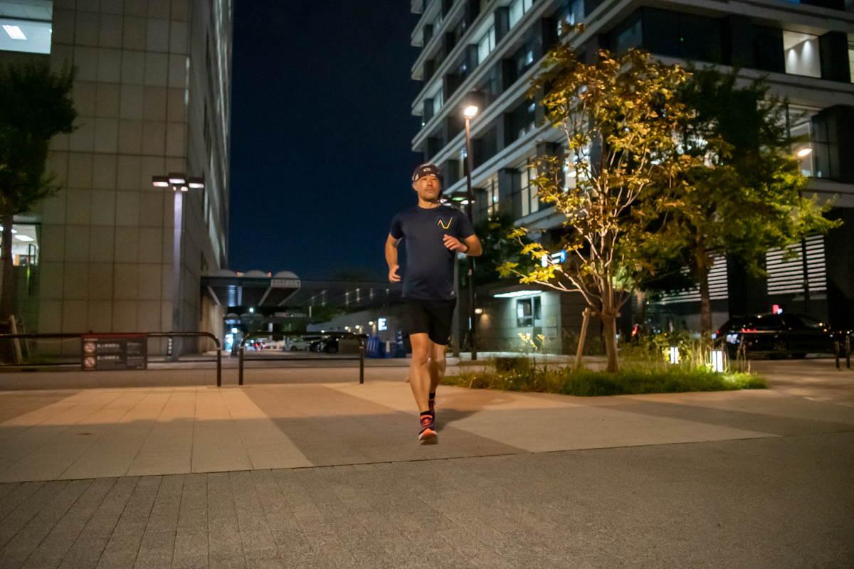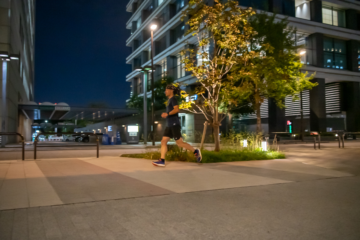 なるほど間宮さんが言っていた通り。体感より早いペースで、軽く走れ、面白いほど進む。“万能シューズ”として期待されるのは、すぐに理解できる。これって、ありなのかもしれない……。と、思った矢先に感じたのは、土踏まずへの、わずかな心もとなさ。このペースでは心配ないので、もう少しペースを上げてみよう!