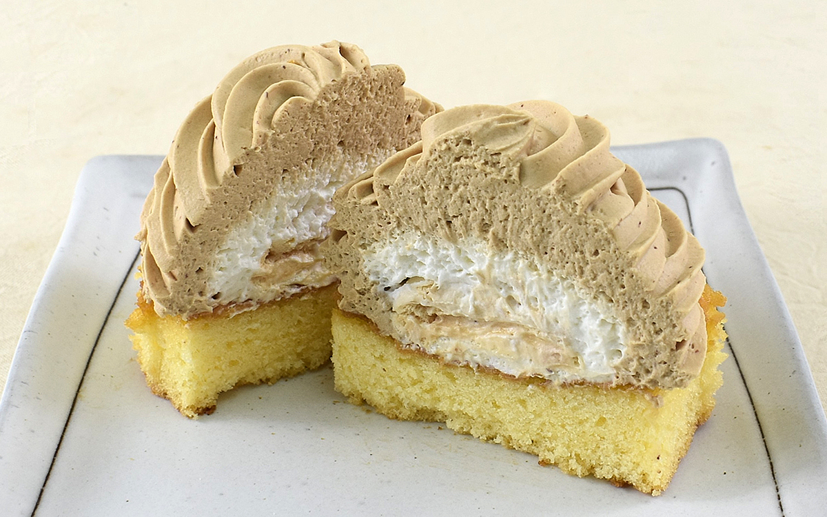 マロンペーストのビジュアルについ気を取られてしまいますが、中がしっかり詰まったスポンジ生地も食べごたえ抜群。今回は各層の味わいをそれぞれ確かめていきましたが、ペーストからスポンジまで一気にいただくのも異なる食感を楽しめるのでオススメですよ。