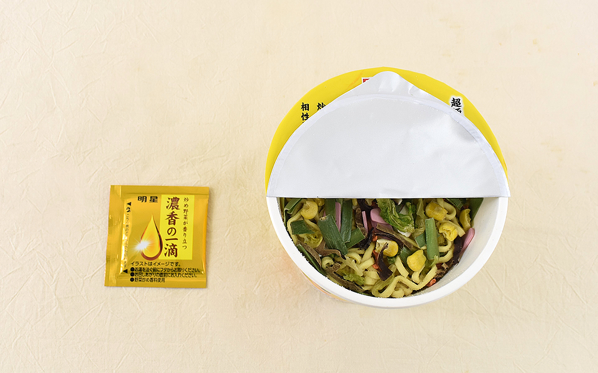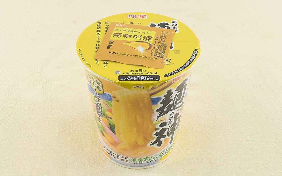 商品名にも含まれている「麺神」とは、明星食品が誇る人気ブランドシリーズのこと。塩麹を練り込んだ“超極太麺”と、旨みが濃く香り高い“超濃香スープ”の組み合わせが特徴です。袋麺タイプとカップ麺の両方が販売されていて、カップ麺ではこれまでに「濃香醤油」や「濃香味噌」などが登場。果たして「濃香ちゃんぽん」はどのような魅力を備えているのでしょうか。