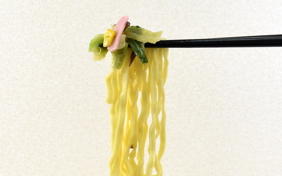 さすが「麺神」シリーズにラインナップされた商品だけに、スープに続いて口へ運んだ麺は食べごたえ抜群。噛むごとに伝わってくるモチモチ感は心地よさすら感じるほどです。「麺神」ブランドサイトによると麺には気泡が含まれ、最高の状態で仕上がるよう製造時に風速・風向き・温度を調整しながら気泡をコントロールしているそう。