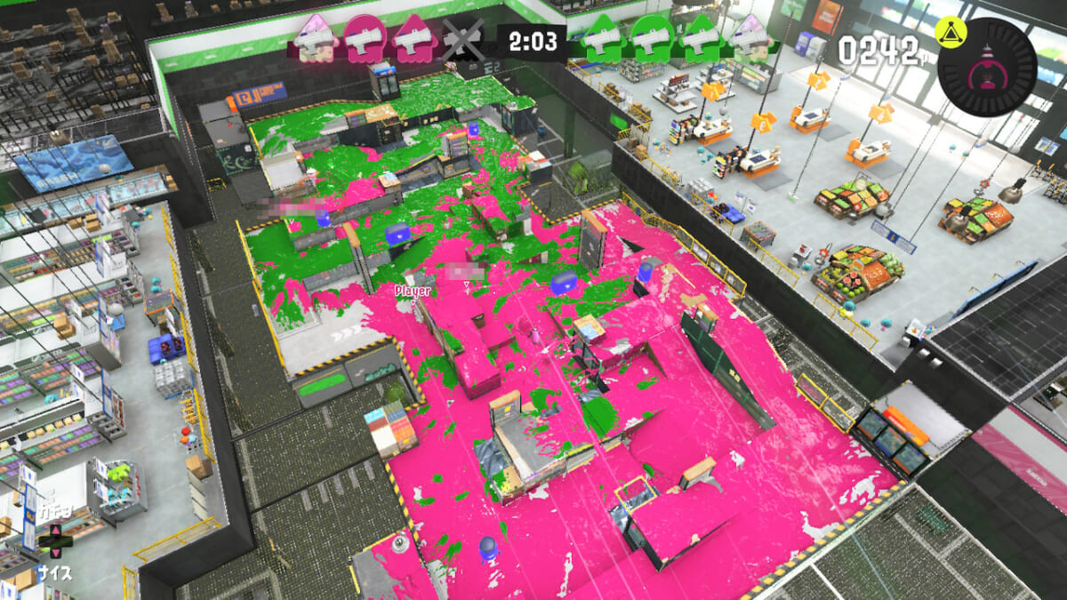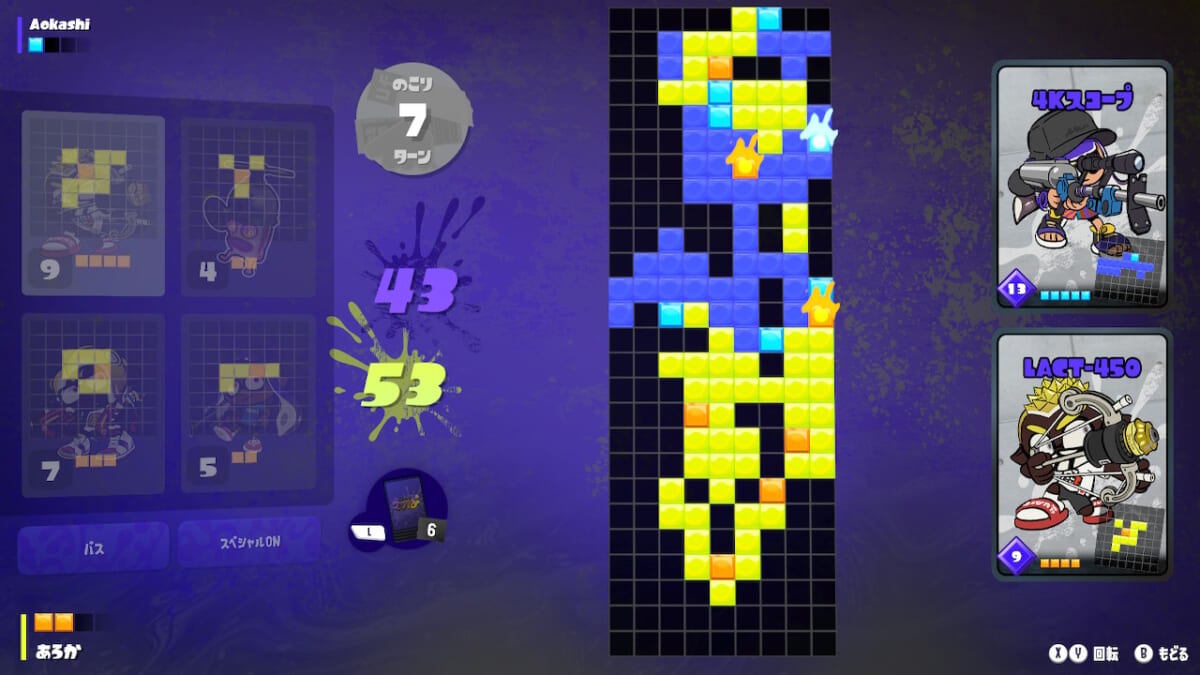 前作スプラトゥーン2では、“おまけ”要素として、簡単なリズムゲームが遊べるようになっていました。本作では「ナワバトラー」というボリュームたっぷりな“おまけ”が遊べます。
