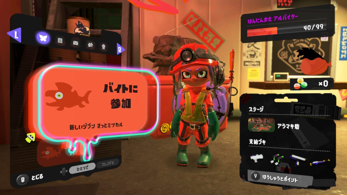 本作には、基本モードの「ナワバリバトル」以外にも多くの遊び方があります。以下、本作の各モードをさっくりと紹介します。