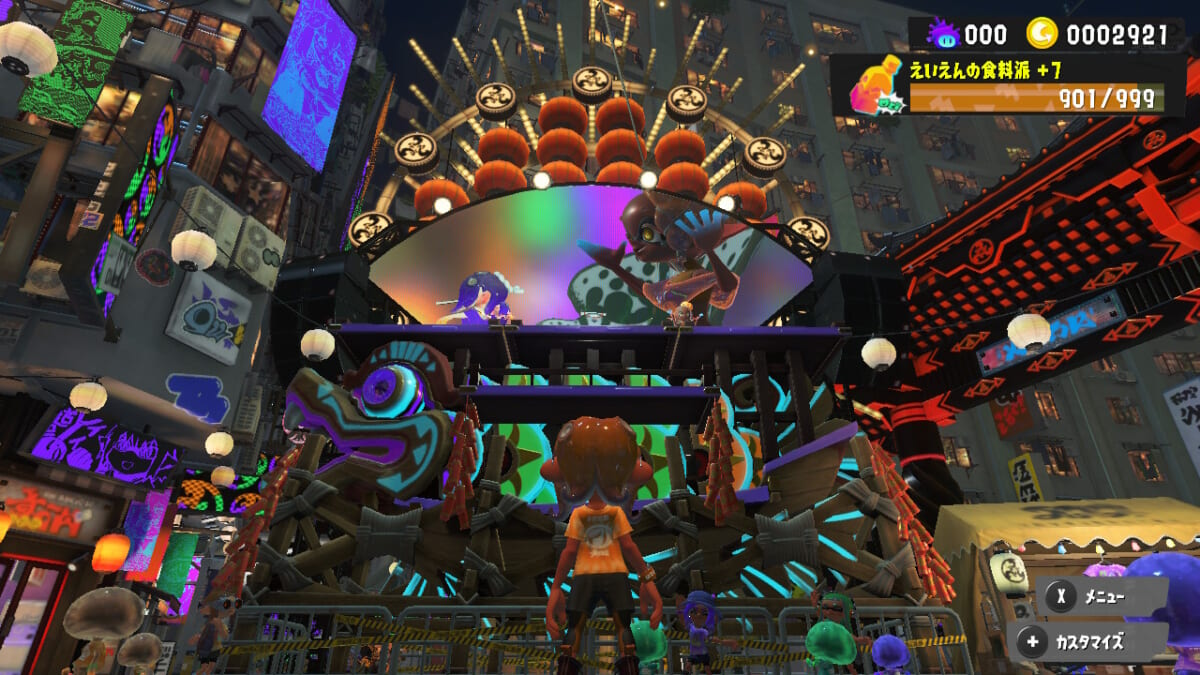 スプラトゥーンシリーズには、「フェス」というイベントが存在します。フェス期間中は、町やステージの雰囲気が一変。バトル中もフェス専用の音楽になるなど、お祭り感に包まれます。