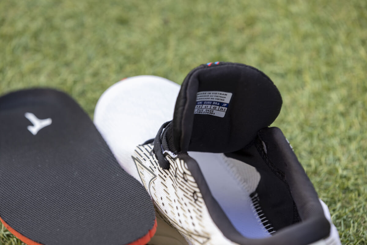 「初心者にも履いていただくライダーには、他社と比べて特別大きくはないですが、成型されたしっかりしたヒールカウンターを使用しています。インソール(ソックライナー)はEVA素材の方が安価なのですが、履き心地を優先させ、しっかりしたPU素材(ポリウレタン)を採用しています。これはミズノの品質基準が、非常に厳しいためです」(吉村さん)