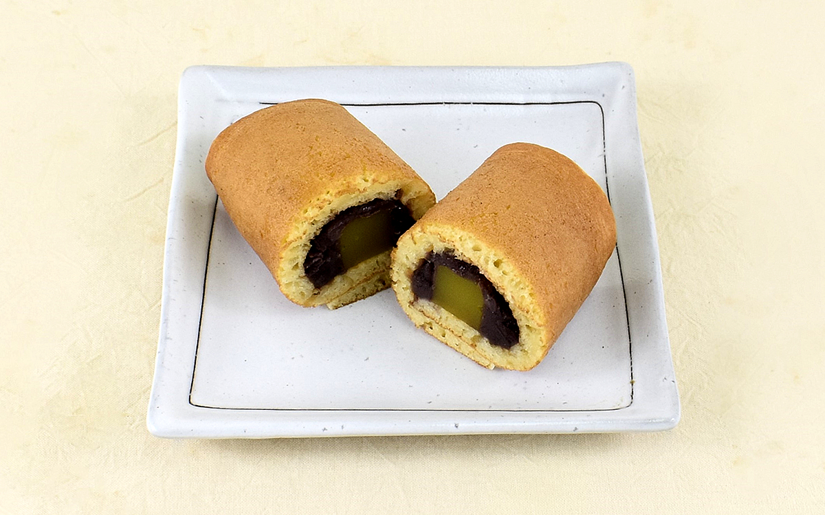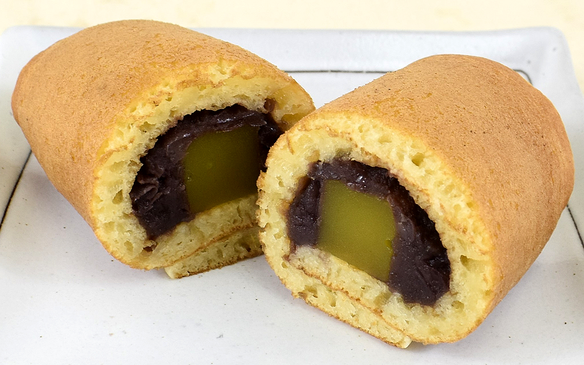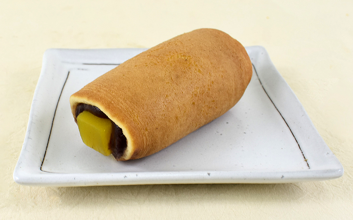 商品を手にしてみて、名称が示す意味に思わず納得。パッケージ越しでもわかるように、どら焼きの生地でぐるりと芋ようかんを包みこんでいるのが特徴です。また、芋ようかんだけでなく、つぶあんが一緒に巻いてあるのもポイント。芋ようかんをどら焼きの具材として使用した和生菓子は、果たしてどのような味わいを楽しませてくれるのでしょうか。