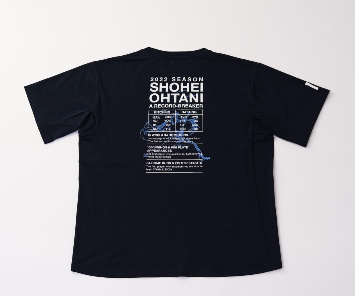 そのほか、3つの史上初の記録や二刀流ロゴをプリントしたオリジナルTシャツを1000着、オリジナルタオルとオリジナルキャップを各600個限定で販売開始します。税込価格は、Tシャツが6600円、タオルが2200円、キャップが6600円です。