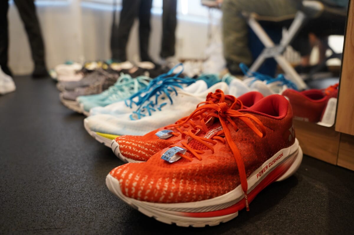 ミッドソールに使われている“FEATHER LIGHT X”という素材は、従来の素材から12%もの軽量化を実現。そして着地衝撃が最も高くなる踵部に集中して搭載されているのは“POWER CUSHION+”。12mの高さから落とした生卵が割れずに6mも跳ね返るほど、衝撃を吸収して力に変えてくれるという驚きの高反発クッション材です。