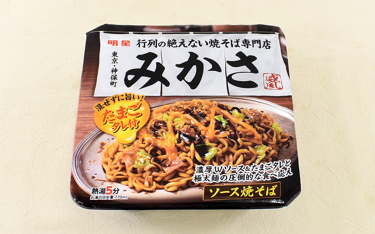 商品名に含まれる「みかさ」とは、東京・神保町に本店を構える焼そば専門店のこと。これまでに数多くのメディアに取り上げられ、“行列の絶えない人気店”として名を馳せています。ちなみに同商品は、ソースとともに「たまごタレ」の小袋が封入されているのも特徴。焼そばにたまごタレがつくのも珍しいですが、商品を製造する明星食品の公式ページによれば“お店の焼そばの上に乗った半熟卵”をイメージしているそう。