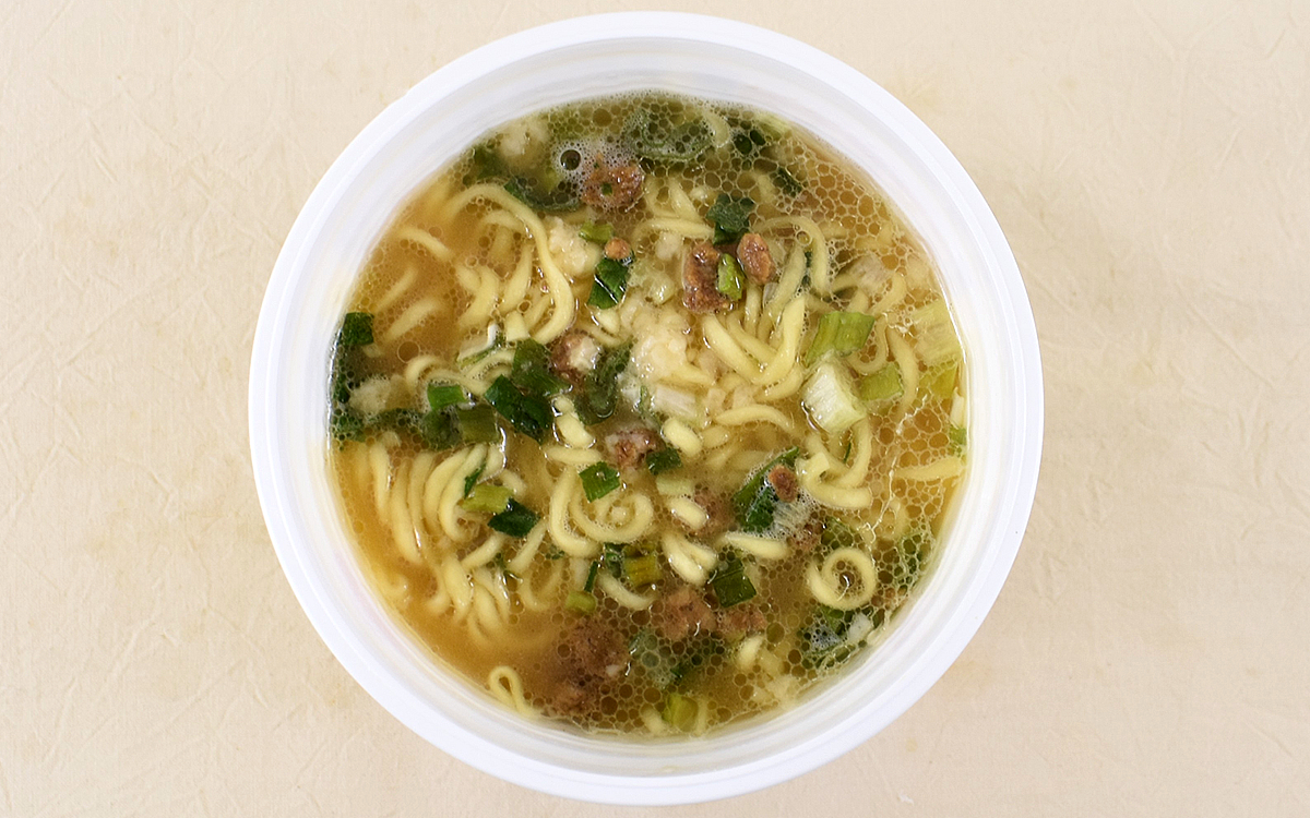 ちなみに同商品のかやくには、肉そぼろ・背脂加工品・ねぎの3種類が入っています。シンプルといえばシンプルですが、スープを吸った肉そぼろからはじゅわっとあふれ出る旨みがGOOD。ふわっとした食感の背脂は肉そぼろでも出せないコクが持ち味で、豚骨醤油スープにしっかり馴染んでくれました。
