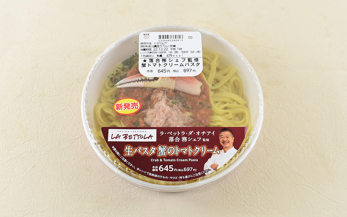 ●「ラ・ベットラ・ダ・オチアイ 落合務シェフ監修 生パスタ蟹のトマトクリーム」(ローソン)