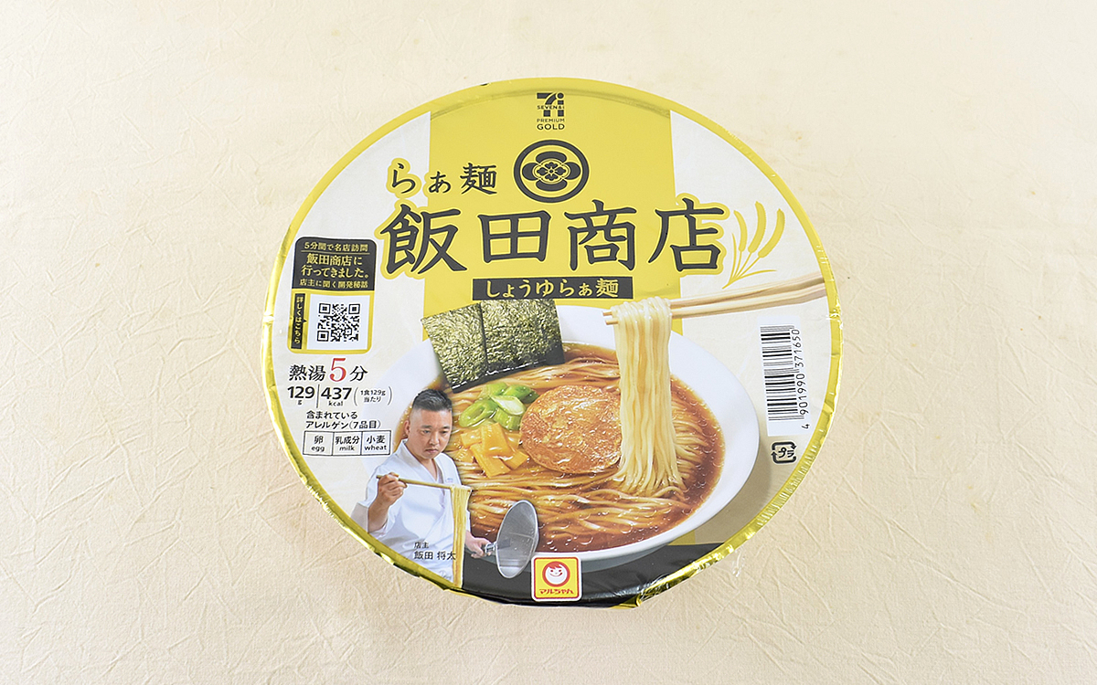 スーパーやコンビニにずらりと並ぶカップ麺。人気商品から定番の味まで選り取り見取りで、どれを手にするか迷ってしまいますよね。近年は有名店とのコラボカップ麺も多いため、陳列棚を見ているだけで心が踊る人は少なくないはず。そんな数ある商品の中から、今回はセブン-イレブンで販売されている「7PG 飯田商店 しょうゆらぁ麺」(300円/税込)をセレクト。いったいどのような味わいを楽しめるのでしょうか。