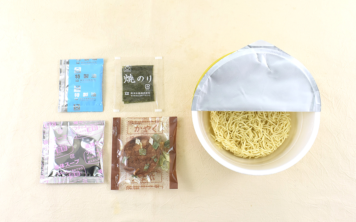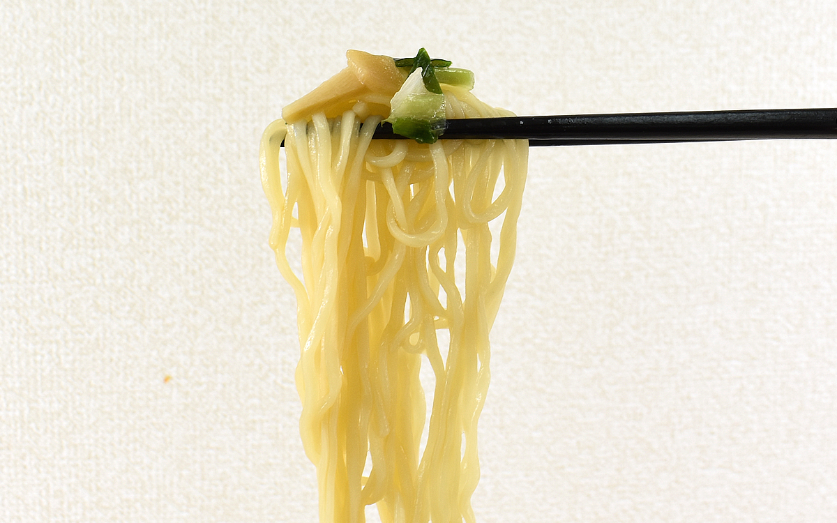 スープだけでも丁寧な仕事ぶりがうかがえますが、さらに驚かされたのが麺の仕上がり。もともとノンフライ麺を使用しているとはいえ、とてもモチモチした歯ごたえで生麺のような食感を感じさせてくれます。東洋水産の商品公式ページによると、麺の配合や切刃を幾度となく調整することで飯田商店の味に近づけたそう。